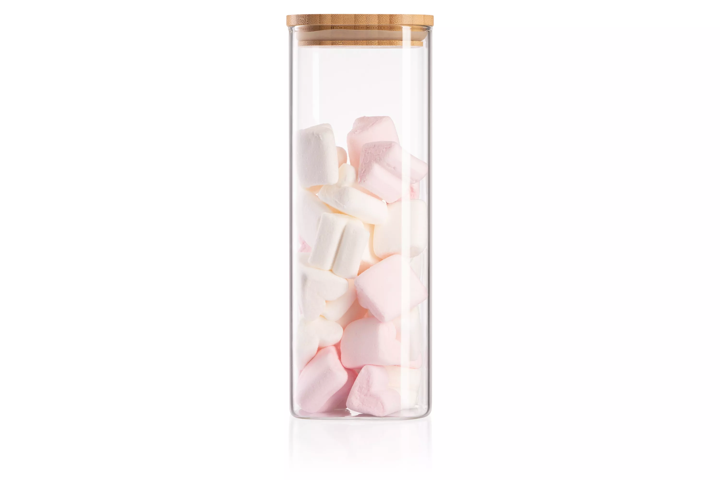Банка изготовлена из прочного боросиликатного стекла — материала, который известен своей термостойкостью, прозрачностью и устойчивостью к царапинам. Такое стекло не впитывает запахи и не взаимодействует с продуктами, сохраняя чистоту вкуса и свежесть содержимого. Крышка из натурального бамбука добавляет натурального тепла и уюта, создавая приятный контраст с гладкой стеклянной поверхностью. Бамбук также долговечен и устойчив к влаге, что делает крышку не только красивой, но и практичной.