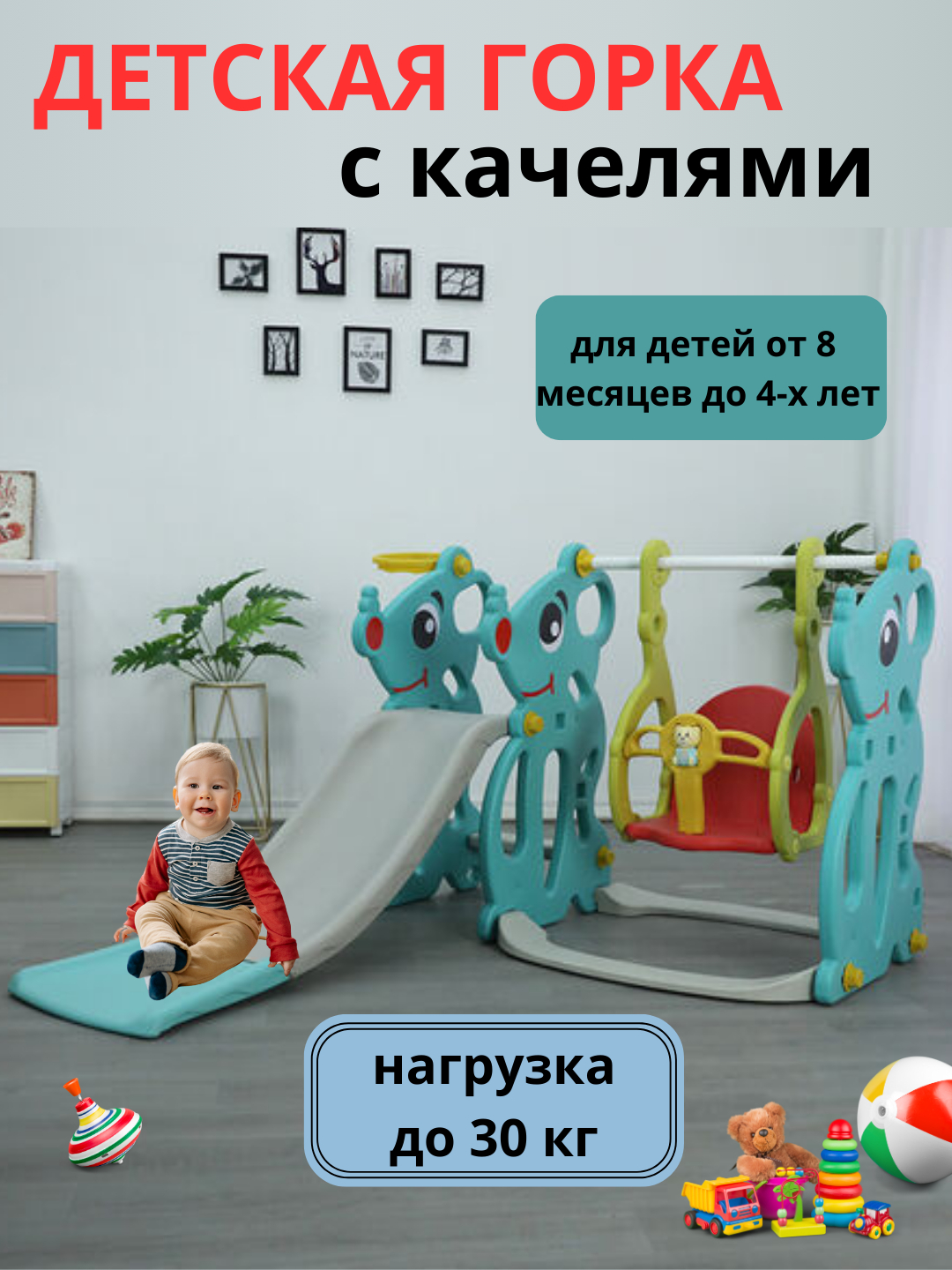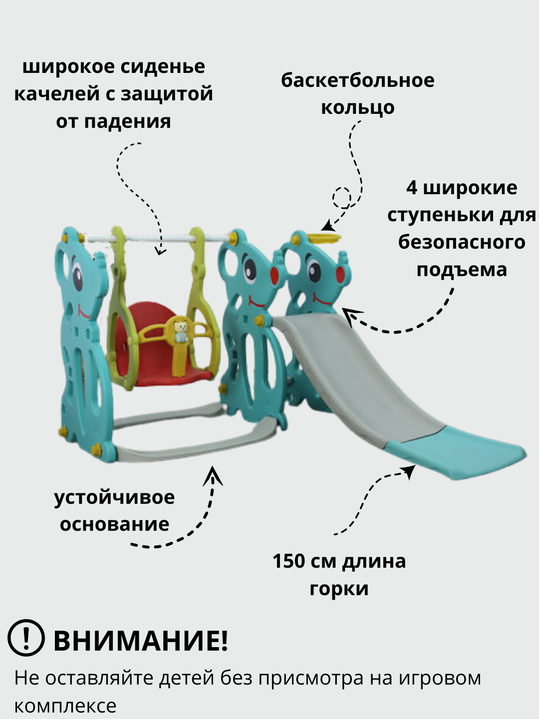 3-в-1: горка + качели + баскетбольное кольцо — максимум радости для вашего малыша!