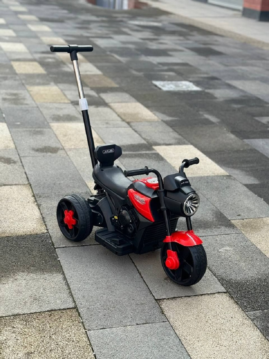 Яркий и компактный электромотоцикл для детей от 1,5 до 4 лет. Оснащён электроприводом и удобной родительской ручкой для управления направлением. Надёжные широкие колёса обеспечивают устойчивость и безопасность во время катания. Отличный выбор для первых самостоятельных поездок малыша.