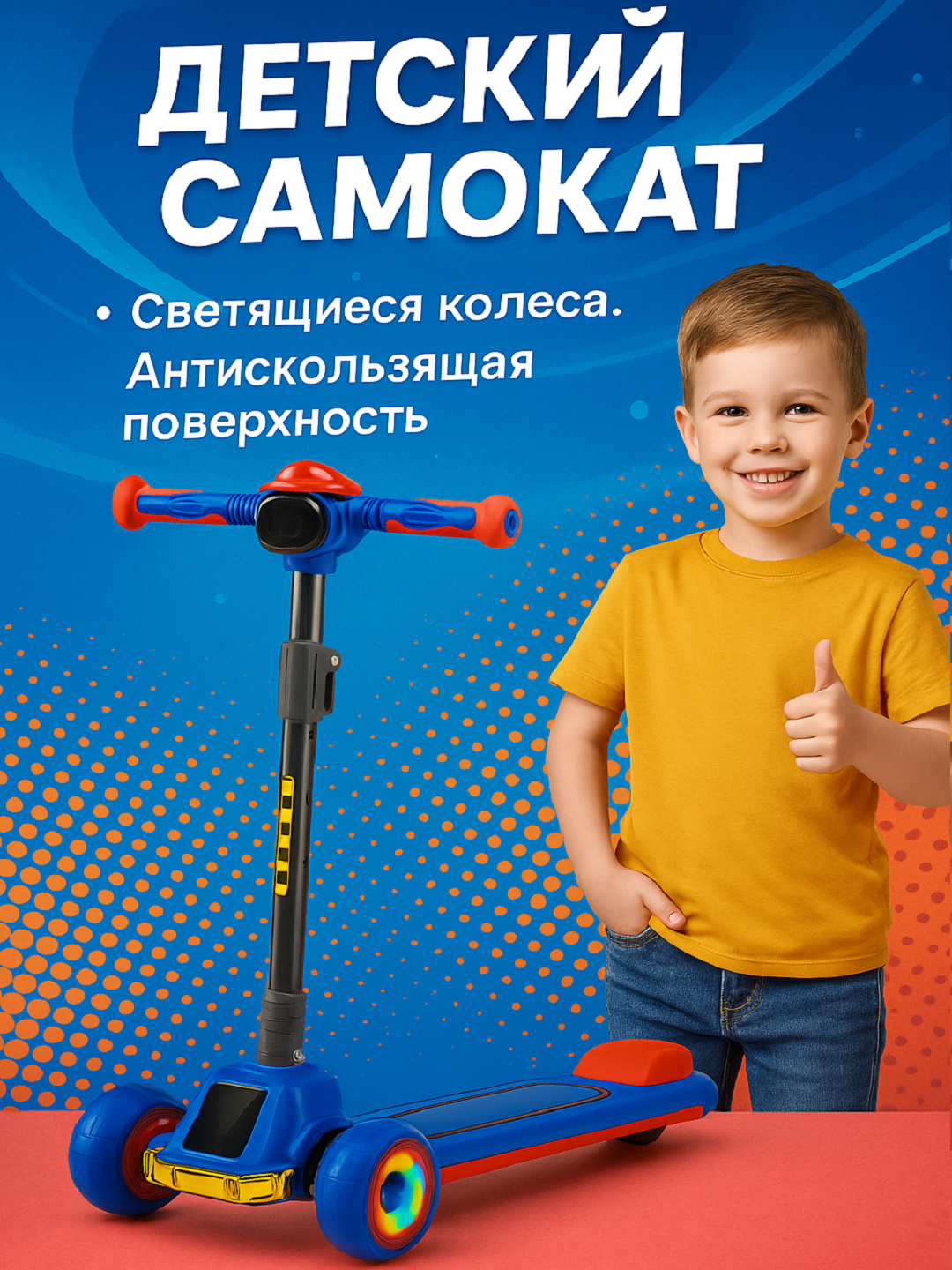 - Регулируемая ручка: подстраивается под рост ребёнка, делая самокат пригодным на несколько сезонов.
