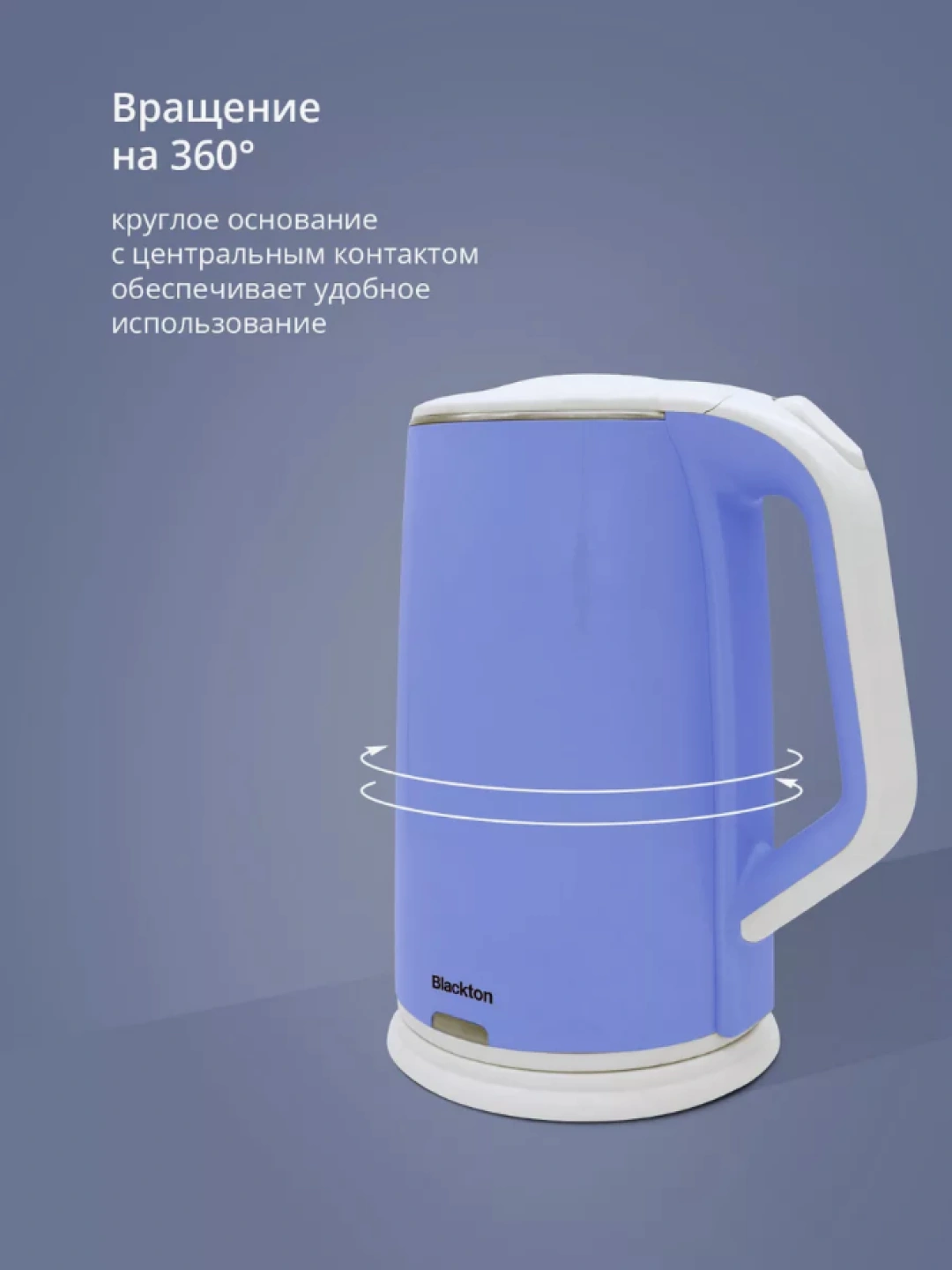 Чайник Blackton BT KT1707P оснащен вращающимся корпусом на 360°, что обеспечивает максимальное удобство в использовании. Независимо от того, как вы расположите подставку, вы сможете легко и быстро установить чайник в нужное положение. Это особенно полезно для людей с ограниченной подвижностью или для тех, кто хочет избежать неудобств при наливании воды. Вращающийся механизм делает процесс приготовления напитков более комфортным и эффективным.