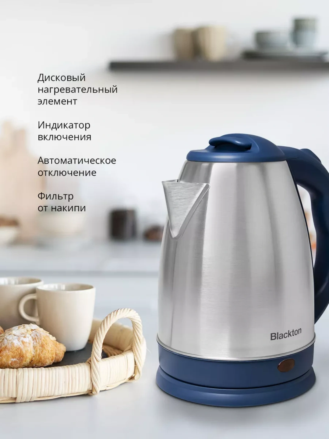 Электрочайник Blackton Bt KT1800S — это идеальный выбор для тех, кто ценит стиль и функциональность. С объемом 1.8 литра и мощностью 1500 Вт, этот чайник быстро и эффективно кипятит воду, обеспечивая горячие напитки для всей семьи или дружной компании. Его элегантный синий цвет в сочетании с серебристыми элементами придаст кухне современный вид. Корпус выполнен из качественного металла и пластика, что обеспечивает надежность и долговечность использования.