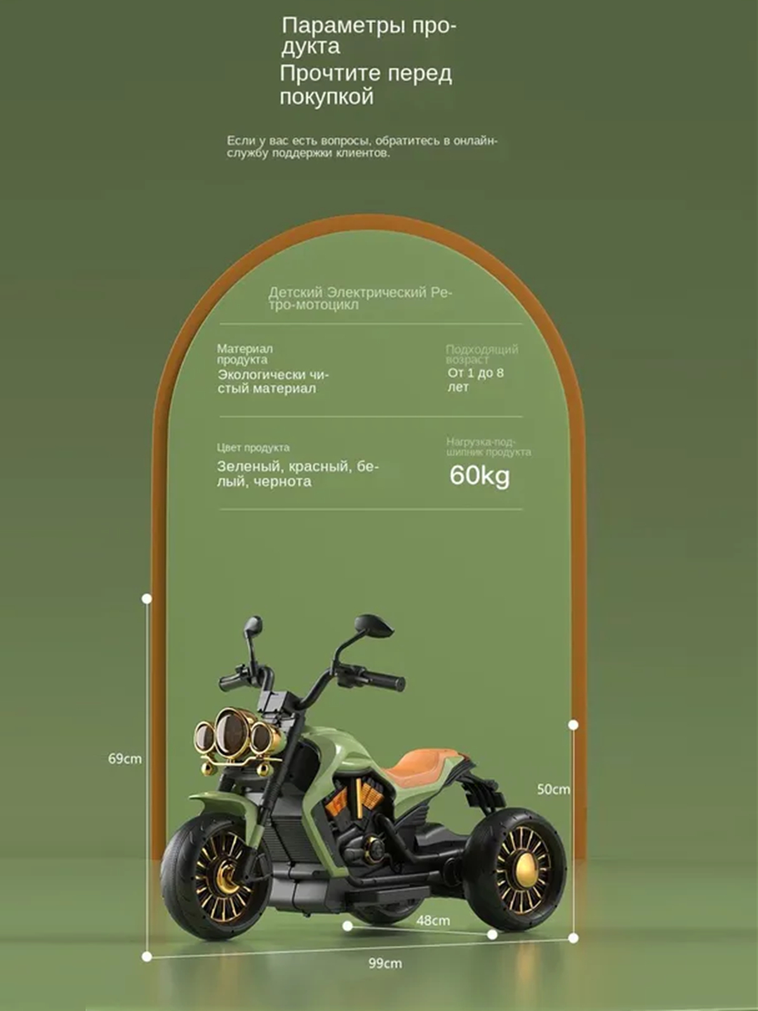 - Размер мотоцикла темно-синий: 99 * 69 * 50 * 48 см