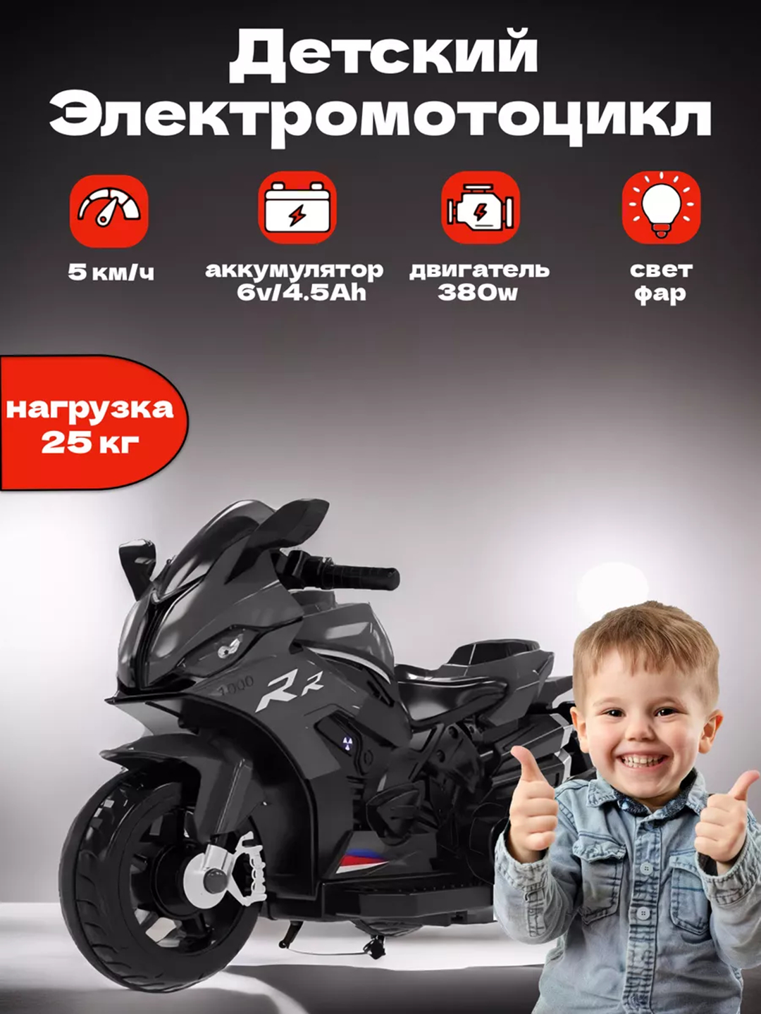 Если вы ищите лучший подарок вашему ребёнку, значит наш новый трицикл вам точно подойдет. Электромотоцикл порадует реалистичным внешним видом, он понравится всем детям без исключения. Этот легко управляемый детский транспорт, который отлично подходит для веселых прогулок на улице. Он имеет максимально реалистичный вид, что особенно привлечет внимание мальчиков и девочек.