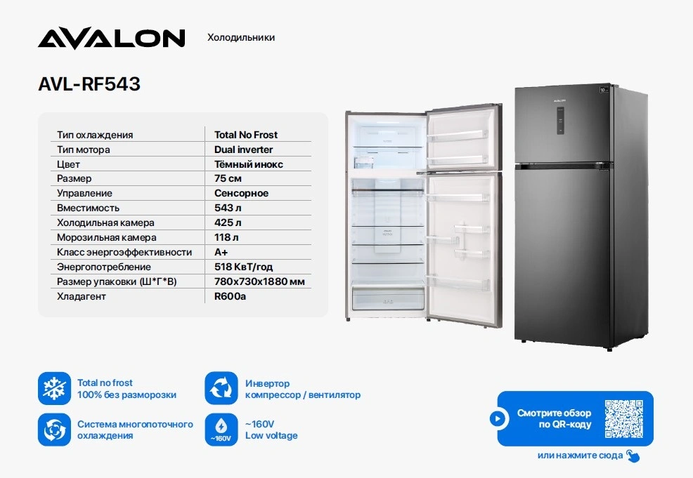 Холодильник Avalon AVL-RF543 - это отдельно стоящий холодильник объемом 543 литра.
