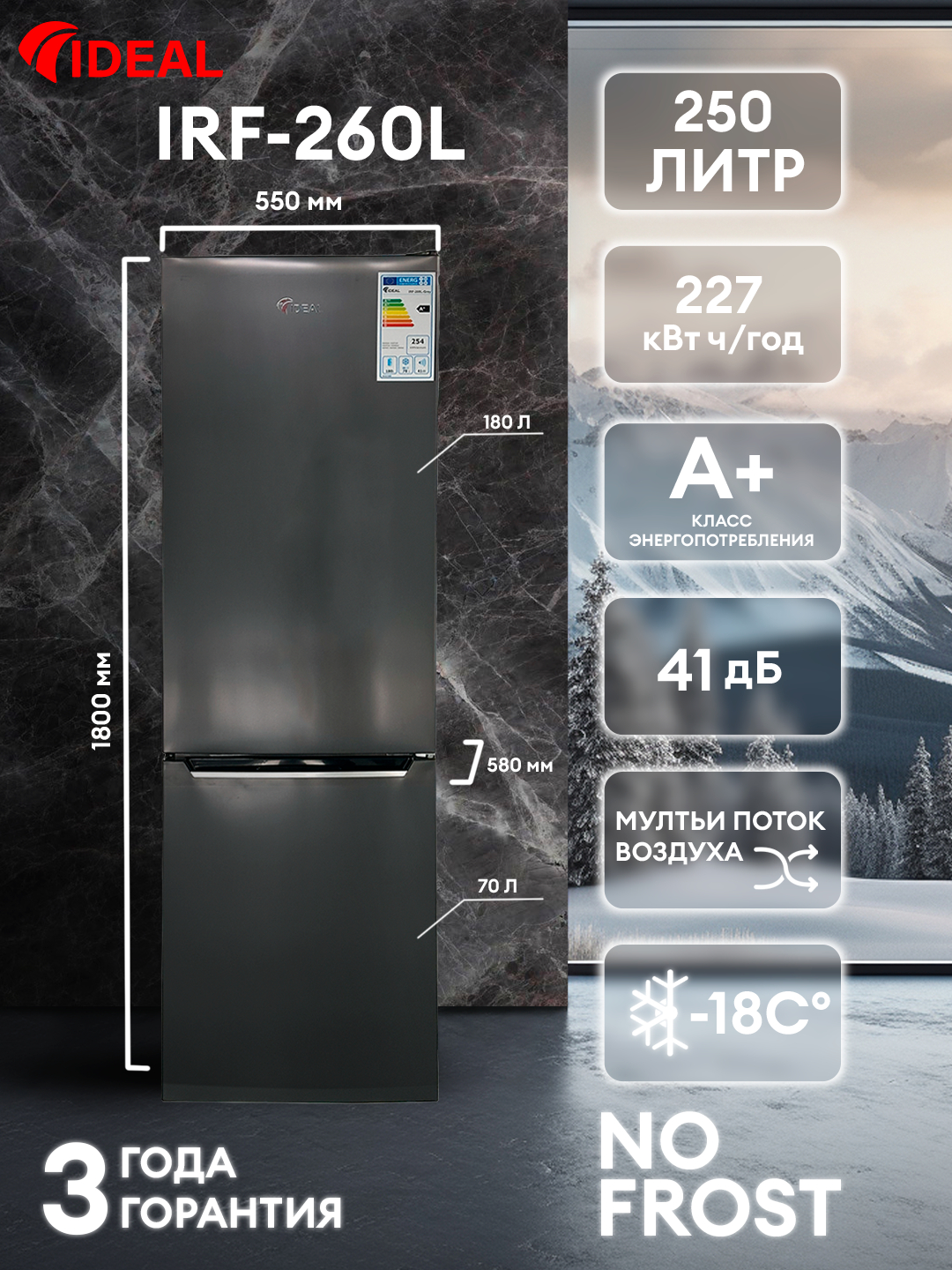 Холодильник Ideal IRF-260/B, серый