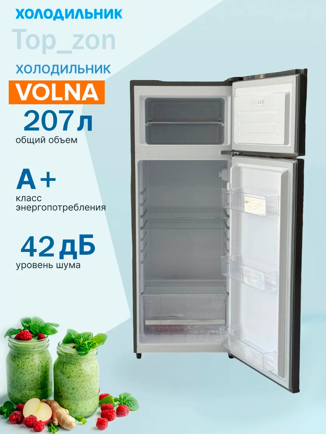 - 💡 Мечтаешь о холодильнике, который умный, тихий и экономный? Вот он – VOLNA KD-230F – создан для тех, кто ценит комфорт, стиль и экономию!