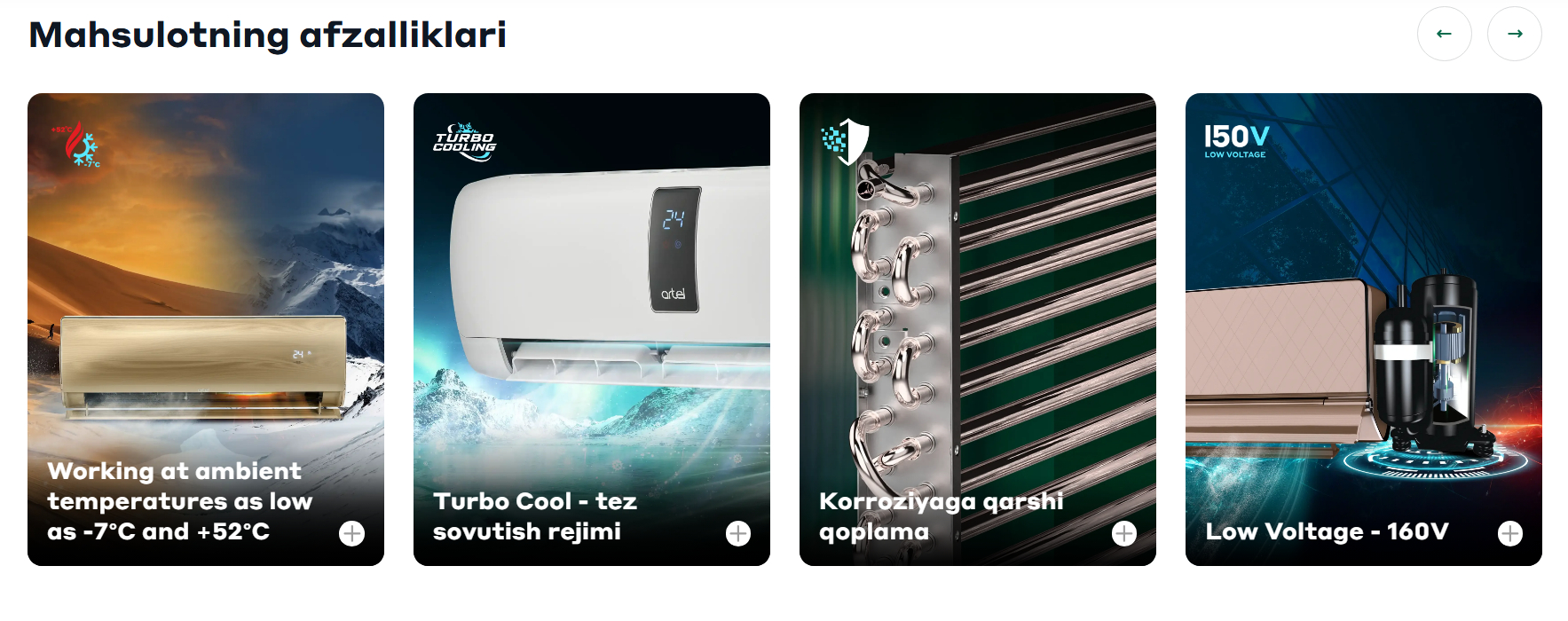 - Inverter texnologiyasi: Energiya tejovchi, samarali va tinch ishlash uchun ideal.