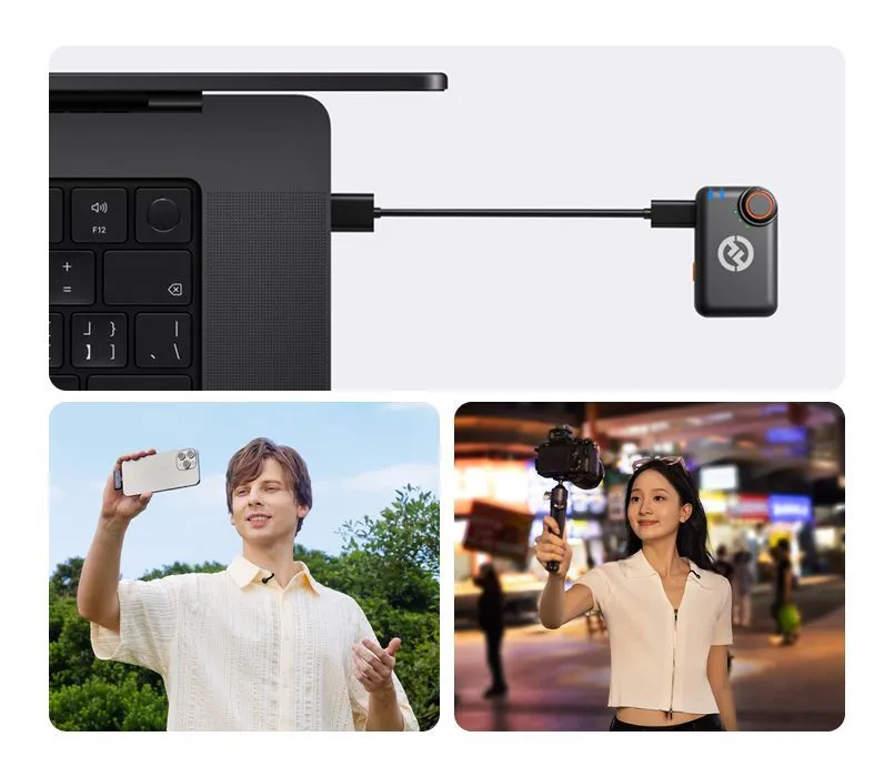 Miniatyura dizayni. Maksimal erkinlik Hollyland Lark M2S radio tizimi sizning ijodingizning ko'rinmas ittifoqchisidir. Marvarid o'lchamdagi mikrofonning og'irligi bor-yo'g'i 7 gramm bo'lib, engillik va kuchni birlashtirgan titan qisqich yordamida kiyimga ehtiyotkorlik bilan biriktiriladi. Hech qanday logotip yo'q va soddalashtirilgan shakl matoga qo'shilib, tomoshabinlarni chalg'itmasdan jonli efirda, intervyu yoki harakatda suratga olish imkonini beradi. Siz faol bo'lganingizda ham, yugursangiz yoki keskin burilish qilsangiz ham, mikrofon joyida qoladi va tuklarsiz old oyna shovqinni to'sib qo'yishga yordam beradi va ovozni toza saqlashga yordam beradi.
