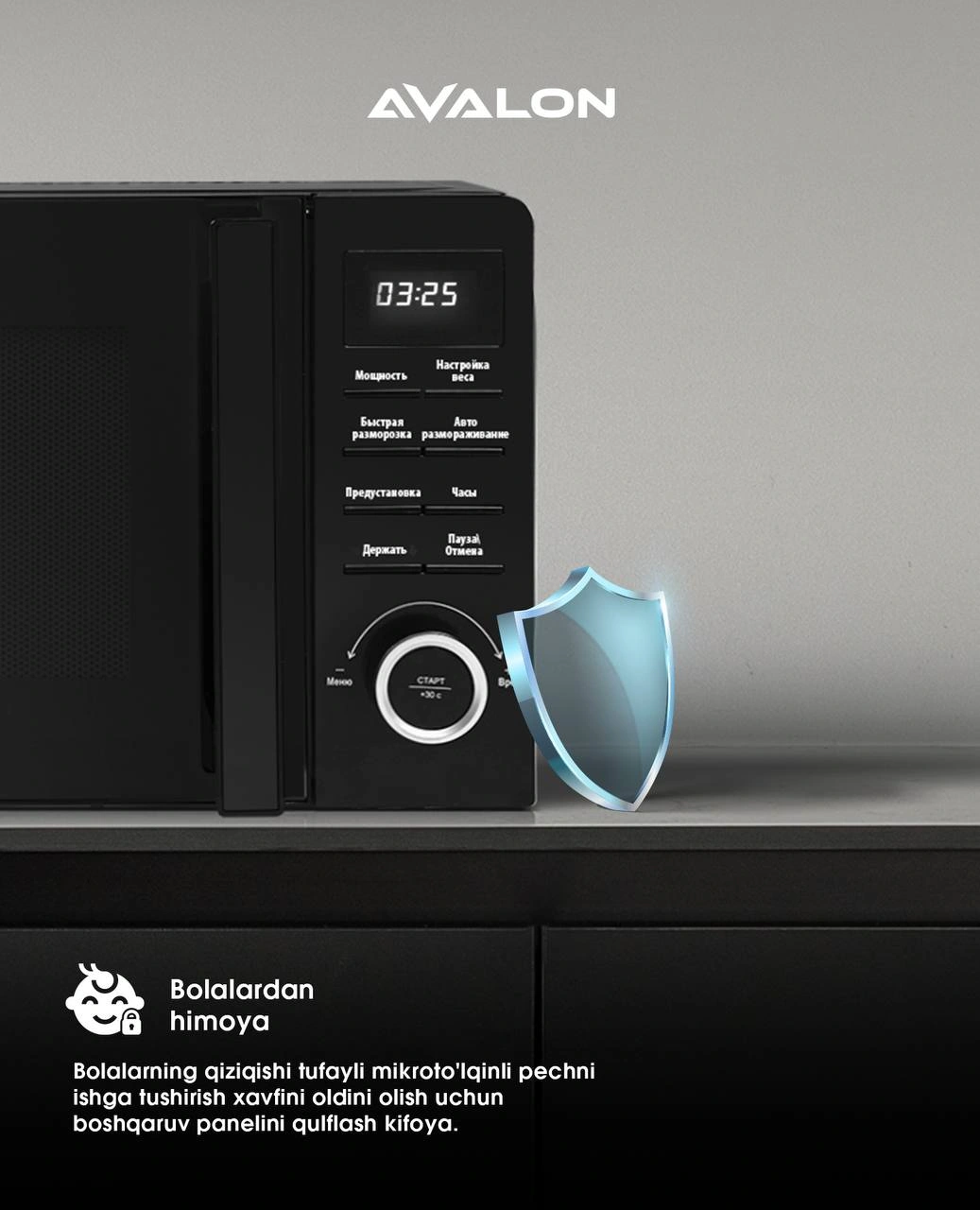 Объем рабочей камеры микроволновой печи AVL-MWO 2040 B равен 20 литрам. Этого достаточно для приготовления полноценного обеда или ужина для небольшой семьи. Управление осуществляется с помощью больших механических переключателей, расположенных на передней панели. За счет этого вы сможете всего за несколько движений установить оптимальную программу приготовления.