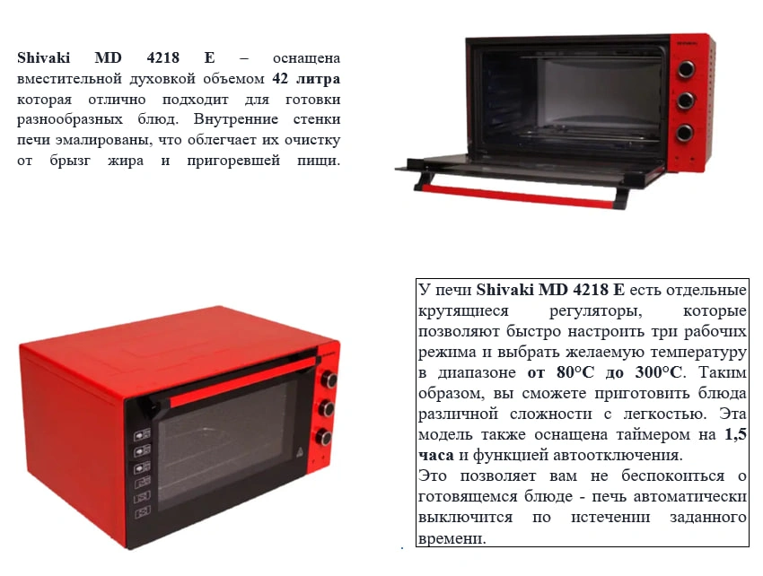 Мини-печь Shivaki MD 4218 Eco (42 л) , бордовый