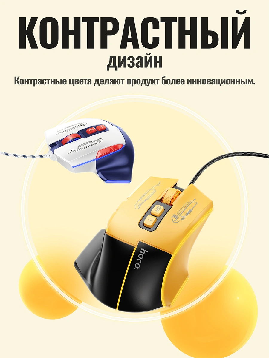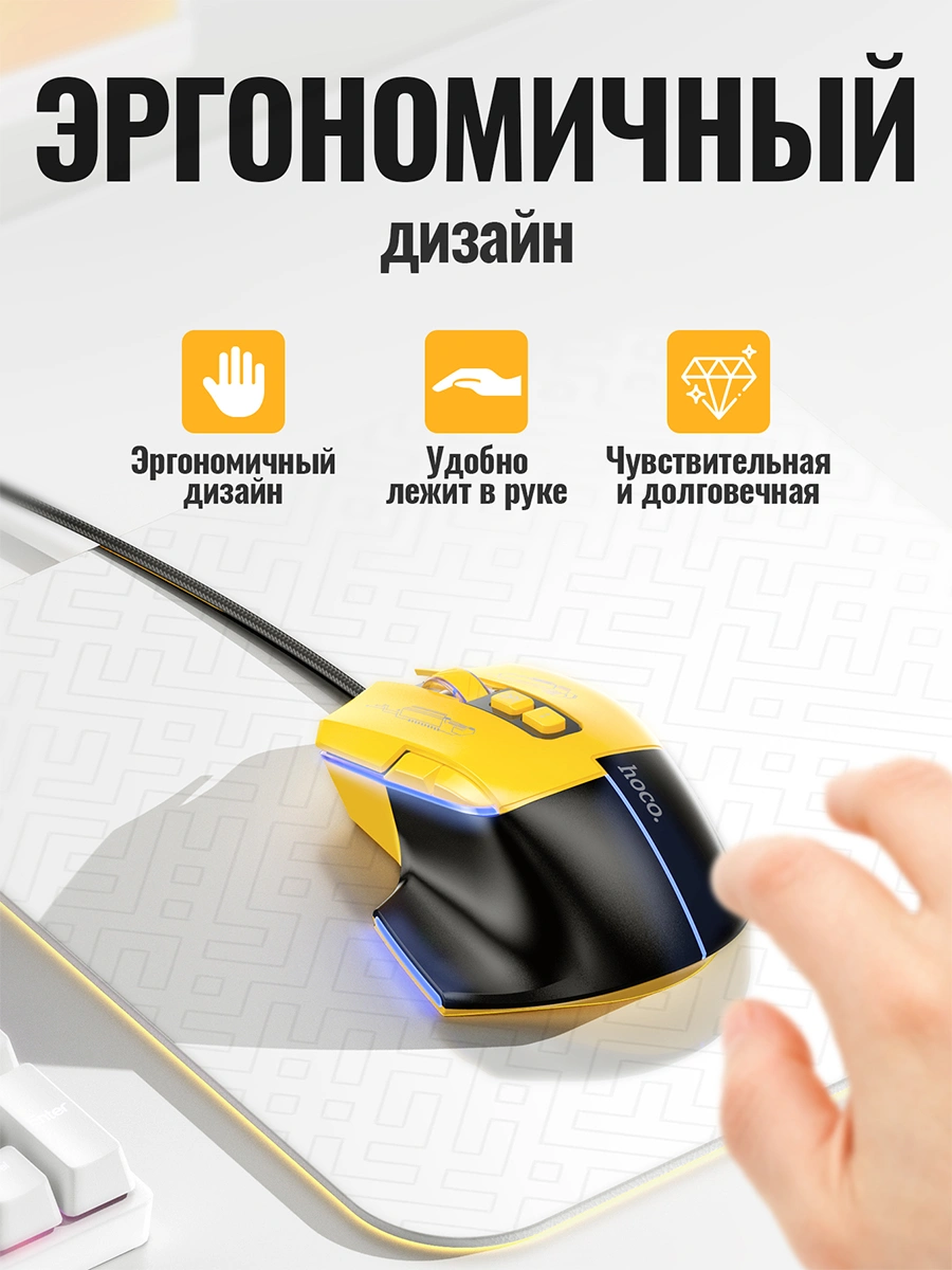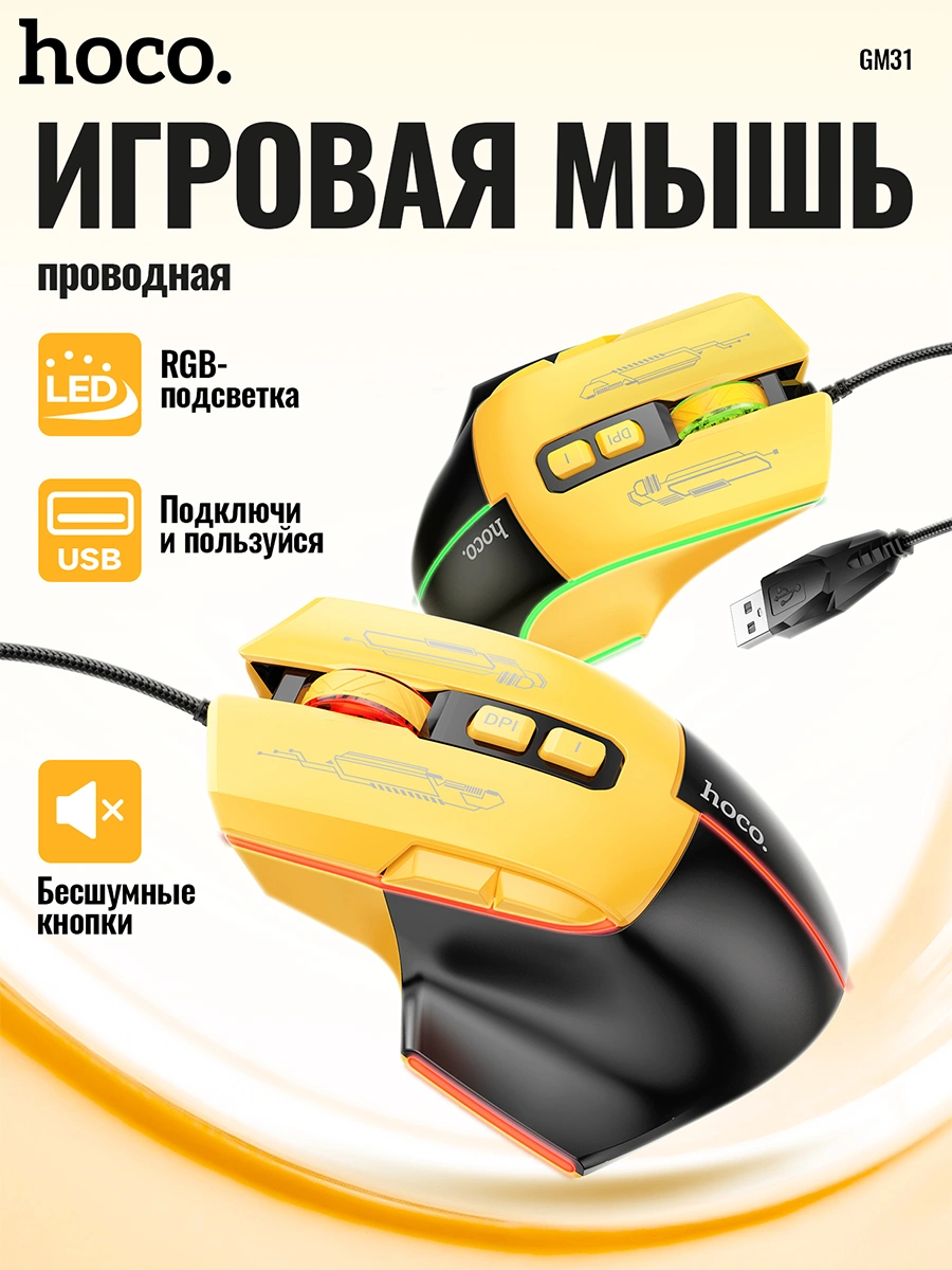 Hoco GM31 — bu o‘yinchilar uchun mo‘ljallangan zamonaviy kompyuter sichqonchasi bo‘lib, aniqlik, tezlik va qulaylikni ta'minlaydi. RGB yoritgichi, ergonomik dizayni va bir nechta DPI sozlamalari bilan ushbu sichqoncha o‘yin davomida ishonchli yordamchingiz bo‘ladi.