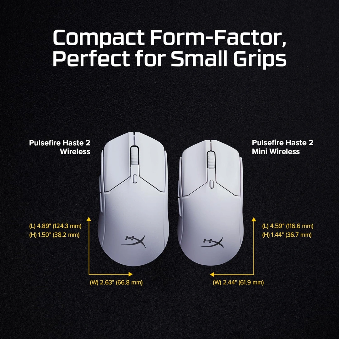 HyperX Pulsefire Haste 2 Mini Wireless — это точная мышь для геймеров, которым нужна сверхлегкая мышь с беспроводной свободой, но все это в компактном форм-факторе весом менее 60 граммов. Эта мощная миниатюрная мышь на 16% меньше, чем Pulsefire Haste 2 Wireless, но содержит тот же набор высокопроизводительных пользовательских компонентов HyperX. Она оснащена двухрежимным беспроводным подключением, что позволяет переключаться между беспроводным подключением 2,4 ГГц и Bluetooth-подключением, а также кабелем USB-C — USB-A, чтобы вы могли заряжать мышь во время использования в проводном режиме. Безупречный датчик HyperX 26K обеспечивает собственное определение DPI до 26 000 со скоростью отслеживания до 650 IPS. Наши пользовательские переключатели HyperX обеспечивают тактильную, звуковую обратную связь при каждом удовлетворительном щелчке и рассчитаны на срок службы до 100 миллионов щелчков. Вы также сможете насладиться превосходным физическим контролем мыши с гладкими, мало фрикционными роликами и прилагаемой накладкой. Получите максимум от каждого движения мыши с помощью программного обеспечения HyperX NGENUITY, которое позволяет создавать макросы для 6 программируемых кнопок, настраивать параметры DPI и персонализировать RGB-подсветку.