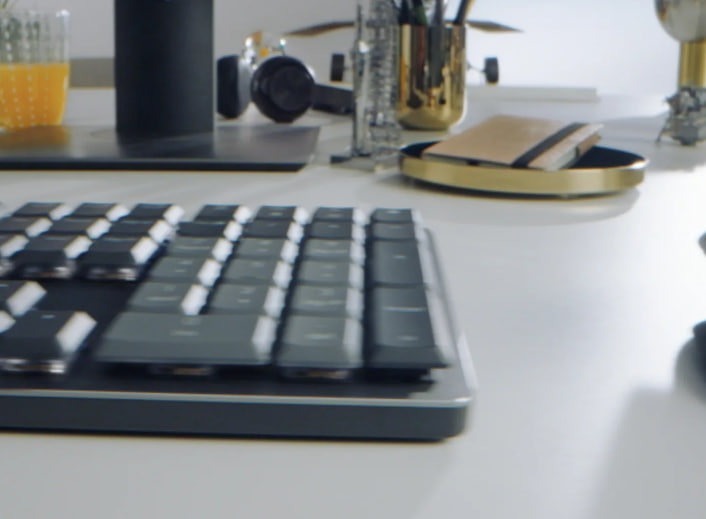 Параметры логики+21Доступно для Windows и macOS на logitech.com/optionsplusпозволяет вам перемещаться между компьютерами, просто перемещая курсор к краю экрана. Ваша клавиатура MX следует за вашим MX Master 3S и позволяет вашему рабочему потоку перемещаться между Windows и macOS22Требуется приложение Logi Options+, доступное для Windows и macOS по адресу logitech.com/optionsplus.
