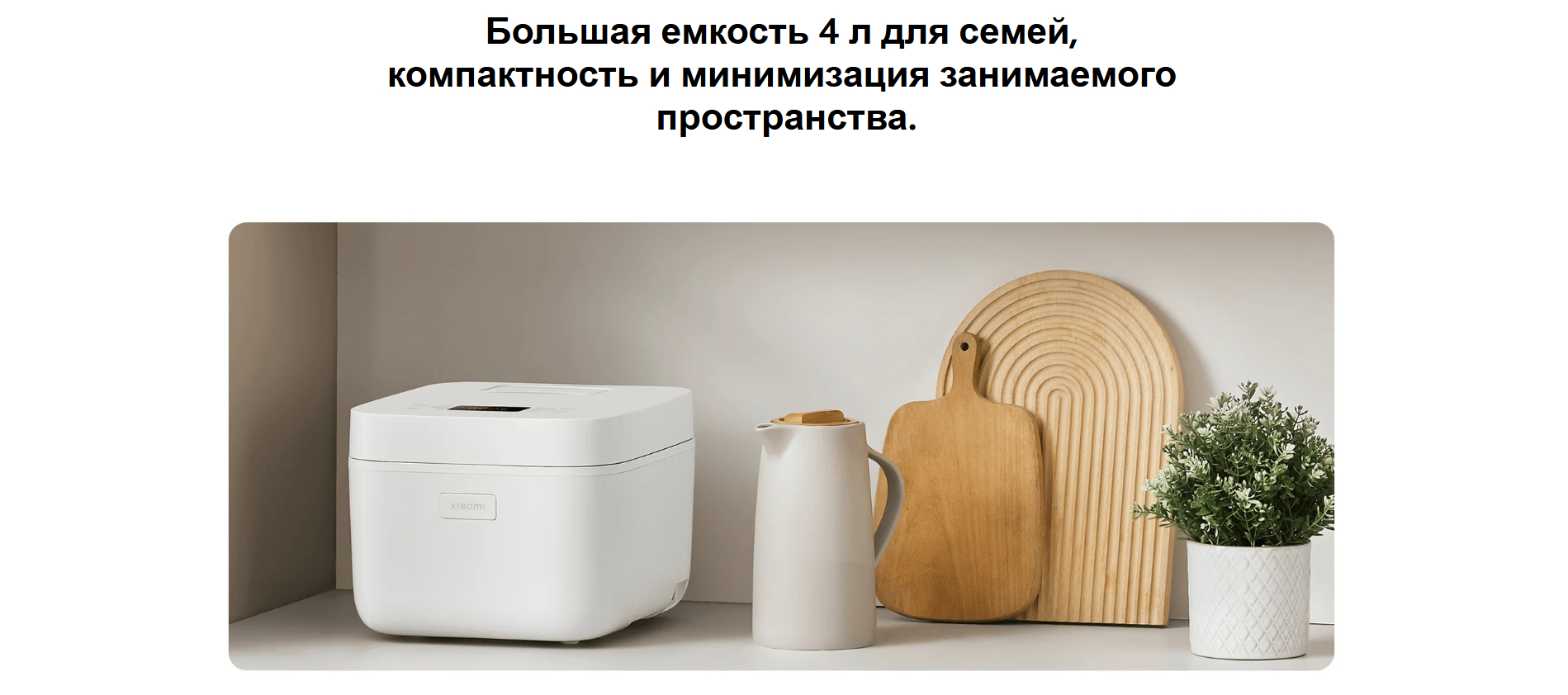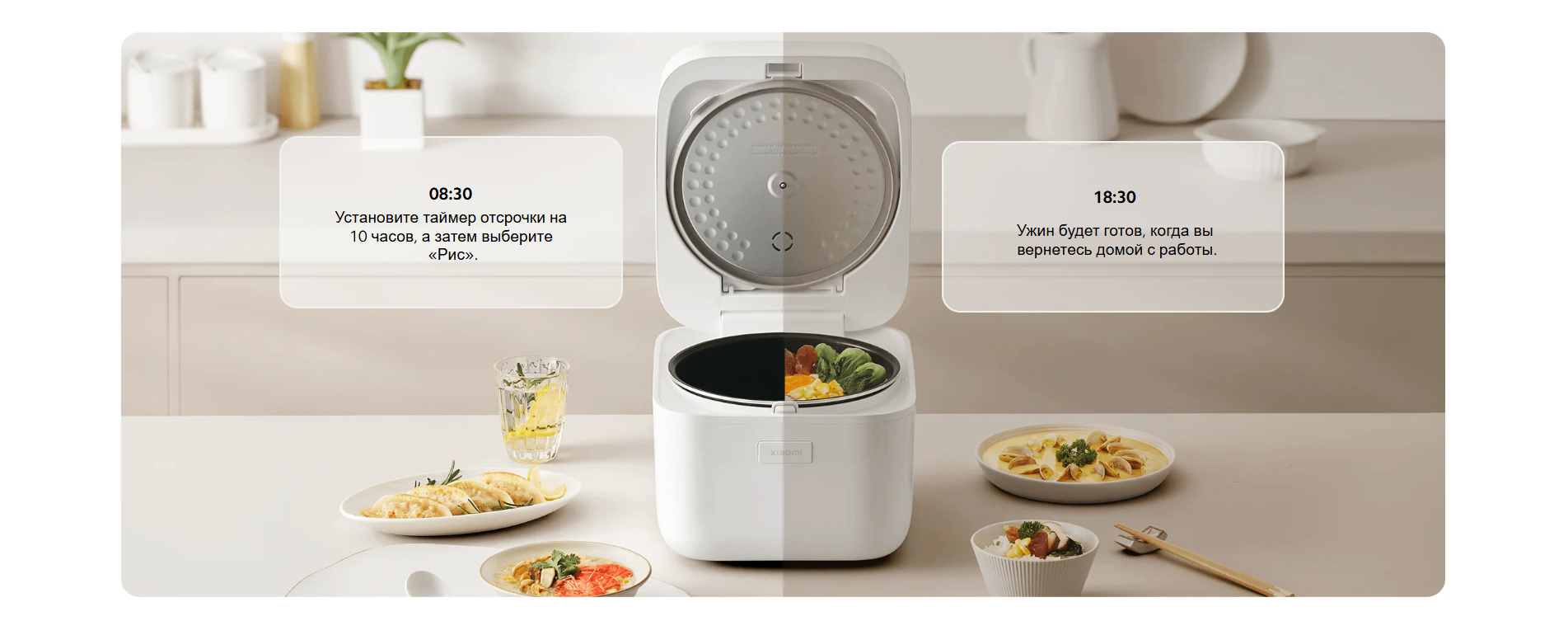 Xiaomi Multifunctional Rice Cooker 4L сочетает в себе компактность, мощность и продуманный дизайн. Это устройство, которое помогает сэкономить время, упростить готовку и каждый день наслаждаться вкусной домашней едой.