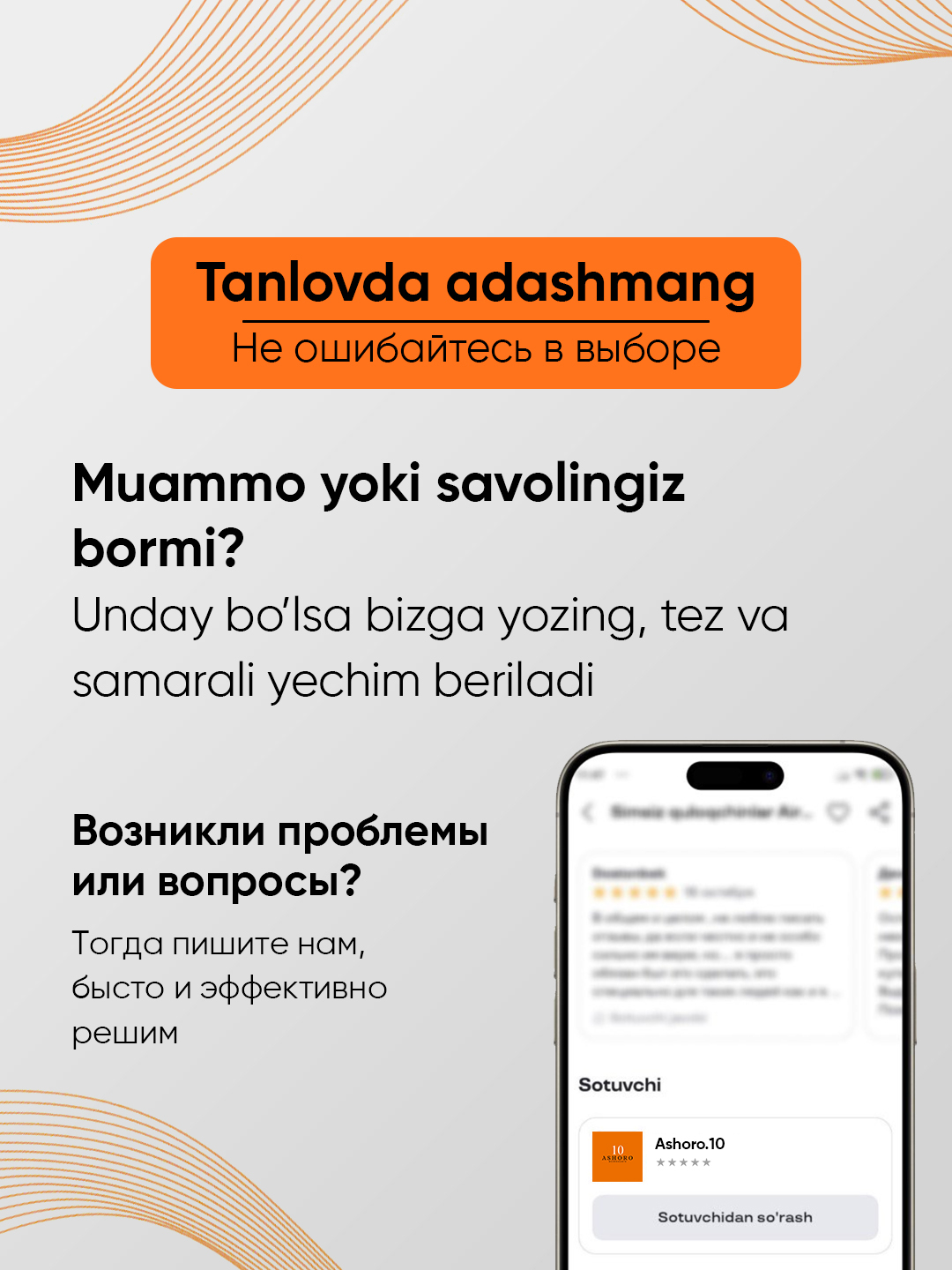 1) У нас есть гарантия! В случае брака мы сделаем обмен или возвращаем деньги
