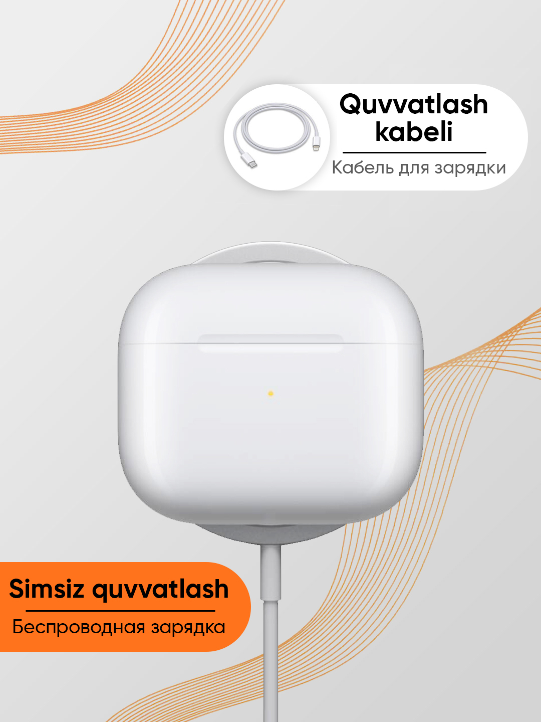 - Комплектация: Картонная коробка, кейс для зарядки наушников, наушники 2 штуки, кабель для зарядки кейса (Lightning)