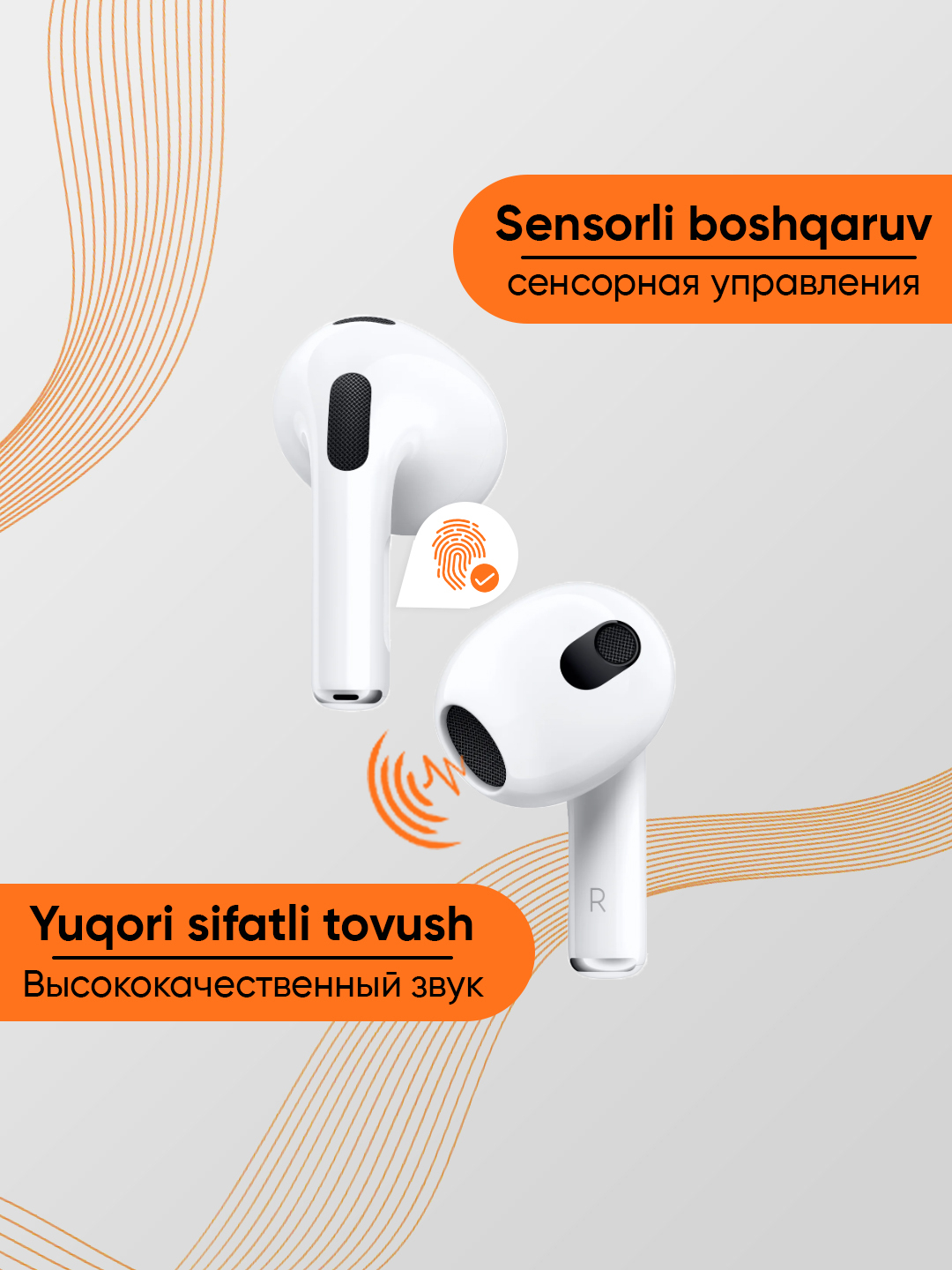 Беспроводные сенсорные наушники Pods 3-го поколения, которые уверенно работают как на iOS, так и на Android-смартфонах. Качество материала на высшем уровне. Наушники оснащены многофункциональным сенсором, позволяющим полностью управлять устройством. Мощный новый чип с легкостью выдает Hi-Fi стерео и мощные басы. Улучшенная производительность Bluetooth 5.0 позволяет удаляться от смартфона на расстояние до 15 метров. Бинауральное исполнение позволит использовать левый и правый наушник по отдельности. Зарядный бокс поддерживает как проводную (через кабель Type-C/Lightning). Защита от пота и брызг по стандарту IPX4 защитит наушники от случайно попавшей влаги. Идеальный выбор для тех, кто ищет сочетание великолепного качества звука и комфортного использования.