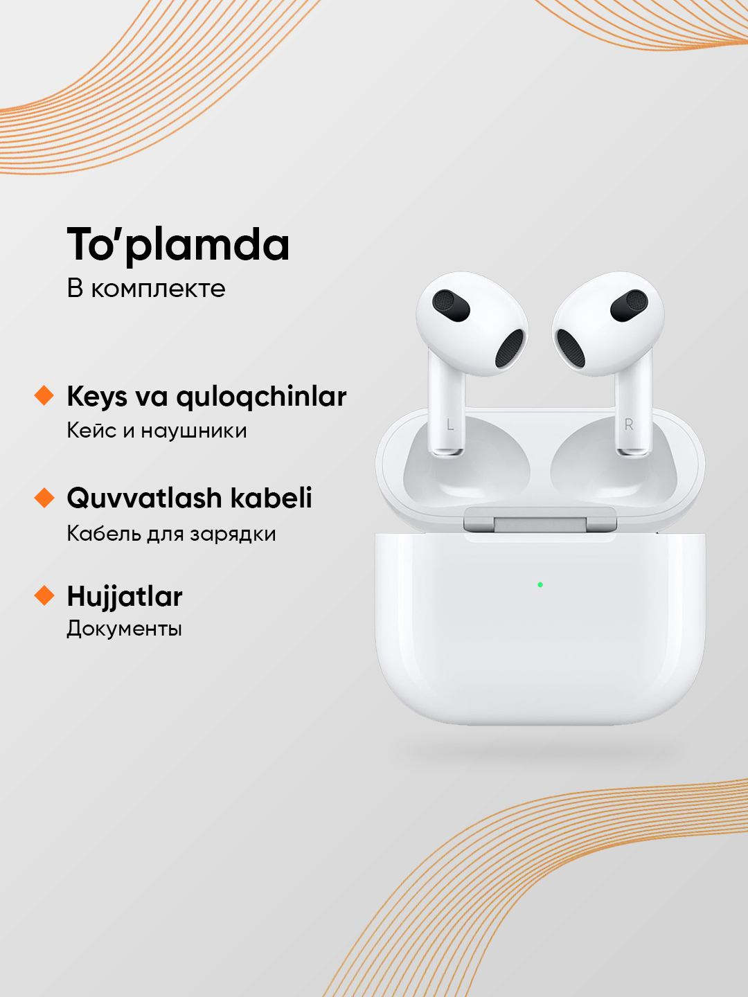 3) Комплектация: Картонная коробка, кейс для зарядки наушников, наушники 2 штуки, кабель для зарядки кейса (Lightning)