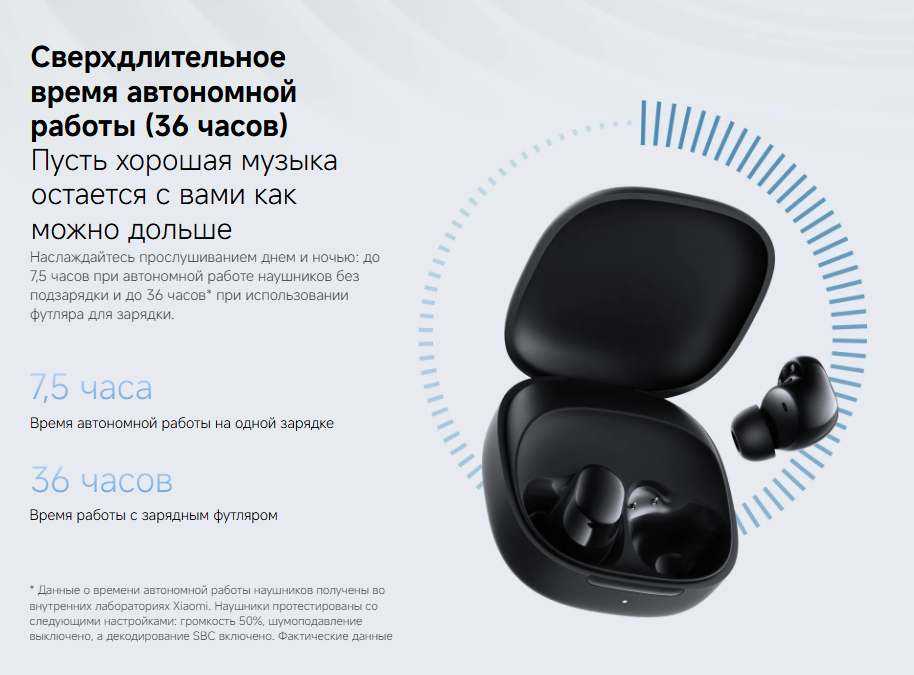 - Автономность: до 6 часов (наушники), до 30 часов (с кейсом)