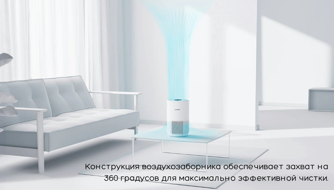 Конструкция воздухозаборника обеспечивает захват на 360 градусов для максимально эффективной чистки. Интеллектуальное управление с помощью приложения Mi Home позволяет активировать очистку воздуха и управлять настройками очистителя Xiaomi Mi Air Purifier 4 в удаленном режиме.