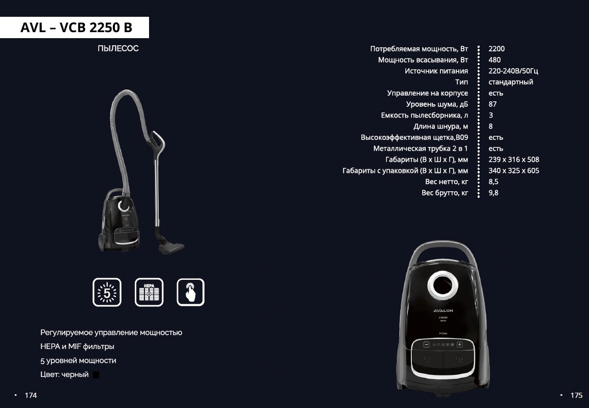 Пылесос Avalon AVL-VCB2250B, черный