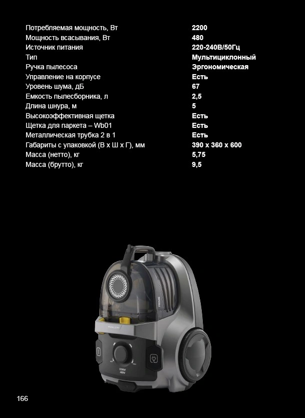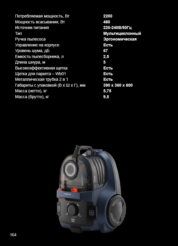 - Ёмкость пылесборника, л - 2.5 Л
