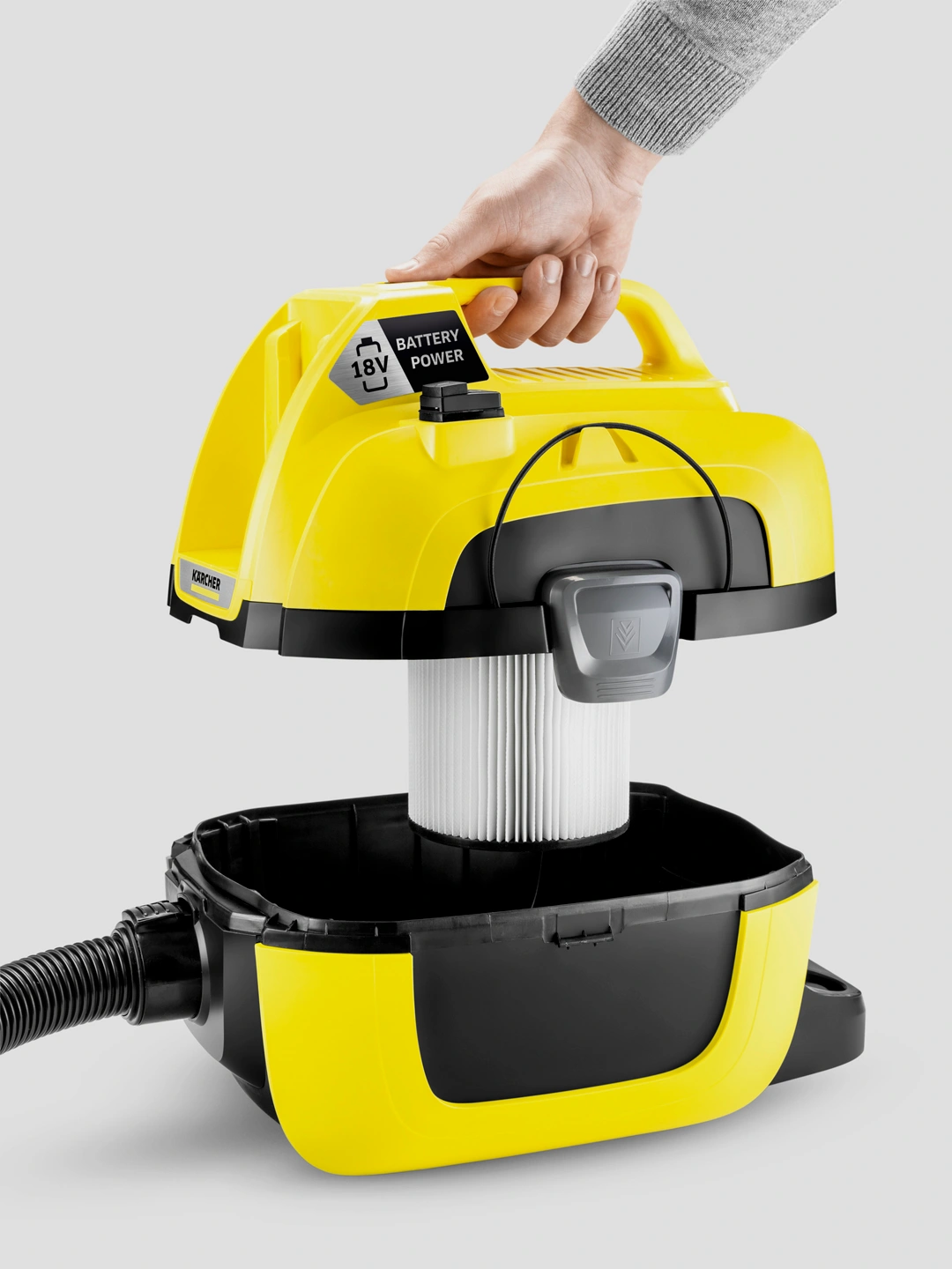 Kärcher WD 1 Compact Battery Set — универсальный аккумуляторный пылесос для сухой и влажной уборки, созданный для удобного и мобильного использования. Устройство позволяет эффективно убирать пыль, мусор и жидкости без привязки к электросети.