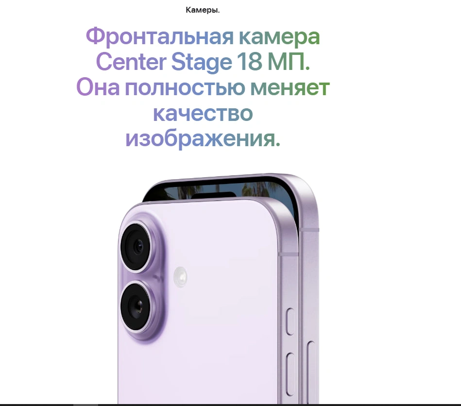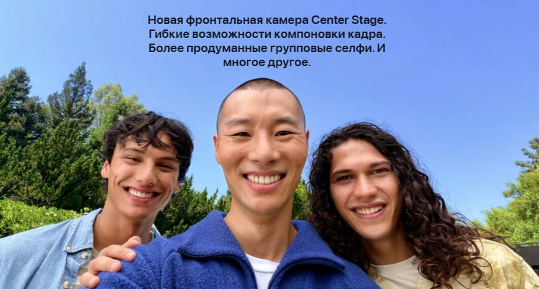 Фронтальная камера на 18 МП получила интеллектуальную функцию Center Stage, которая автоматически удерживает пользователя в центре кадра во время видеозвонков и записи видео. Это делает онлайн-общение, видеоконференции и создание контента значительно удобнее и профессиональнее. Камера также поддерживает съемку видео высокого разрешения, позволяя создавать качественные видеоролики для социальных сетей и личных проектов.