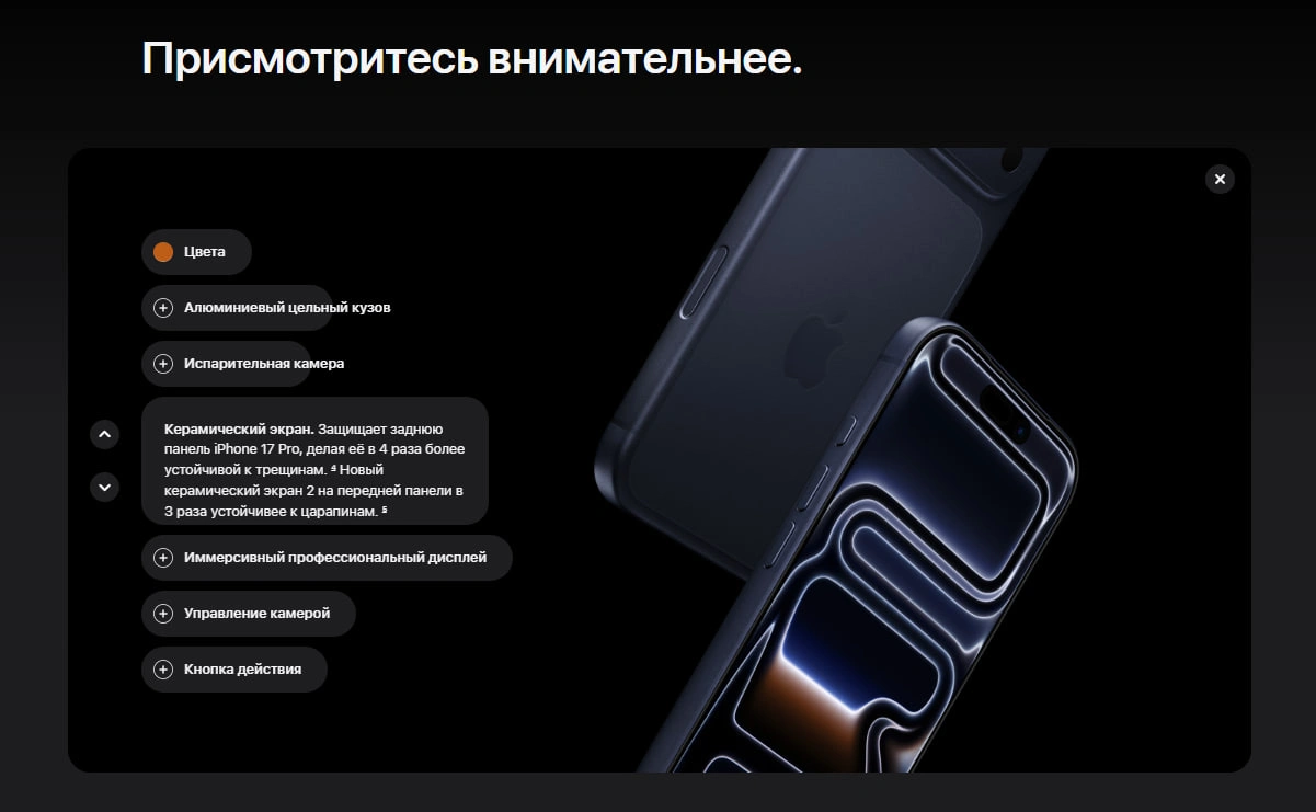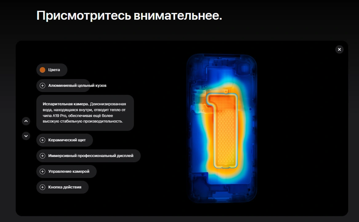 Высокую производительность устройства обеспечивает новейший процессор Apple A19 Pro, созданный для выполнения самых требовательных задач. Он обеспечивает быструю работу системы, мгновенный запуск приложений и стабильную производительность в ресурсоемких играх и профессиональных приложениях. Улучшенная графическая система и интегрированные нейронные ускорители позволяют эффективно работать с искусственным интеллектом, обработкой изображений и сложными вычислениями. Инновационная система охлаждения с использованием паровой камеры помогает поддерживать стабильную работу устройства даже при длительных нагрузках.