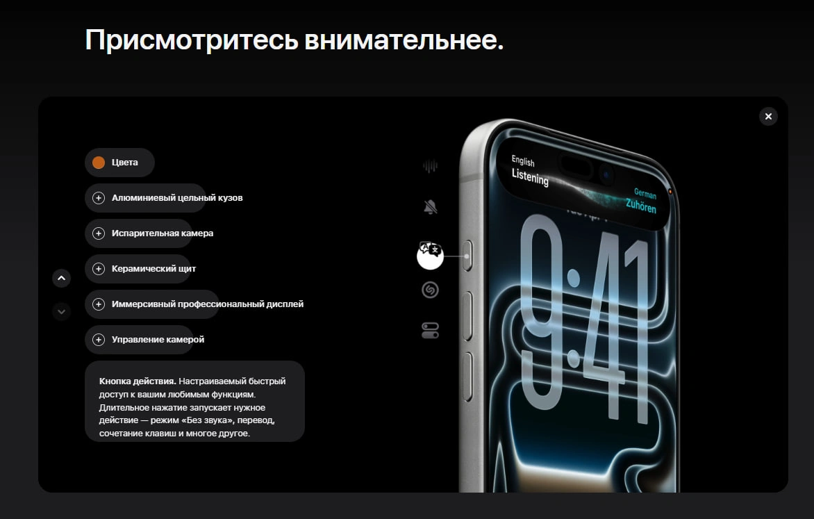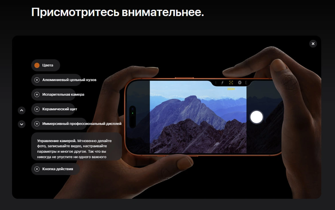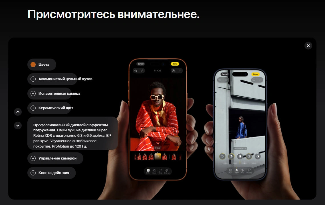 Смартфон оснащен большим и невероятно качественным дисплеем Super Retina XDR, который обеспечивает высокий уровень яркости, глубокий контраст и максимально реалистичную цветопередачу. Высокая частота обновления экрана до 120 Гц делает изображение плавным и приятным для глаз. Благодаря этому интерфейс работает быстрее и отзывчивее, а просмотр фильмов, игры и работа с графикой становятся значительно комфортнее. Защитное стекло Ceramic Shield повышает устойчивость дисплея к царапинам и повреждениям, что делает смартфон более надежным в повседневном использовании.