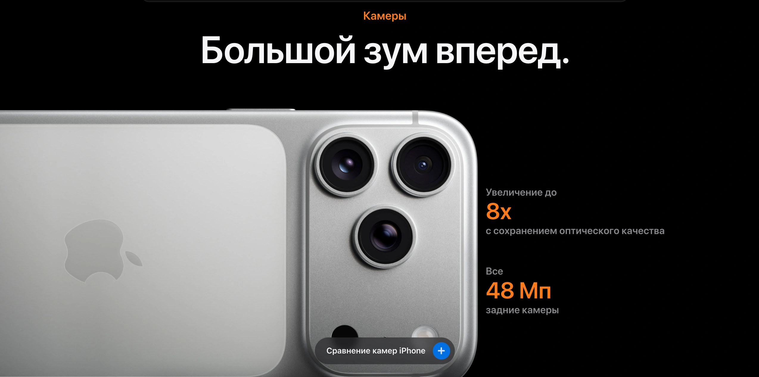 - Камеры: тройной модуль по 48 МП (широкий, ультраширокий, телеобъектив с оптическим зумом 8×), фронтальная камера 18 МП