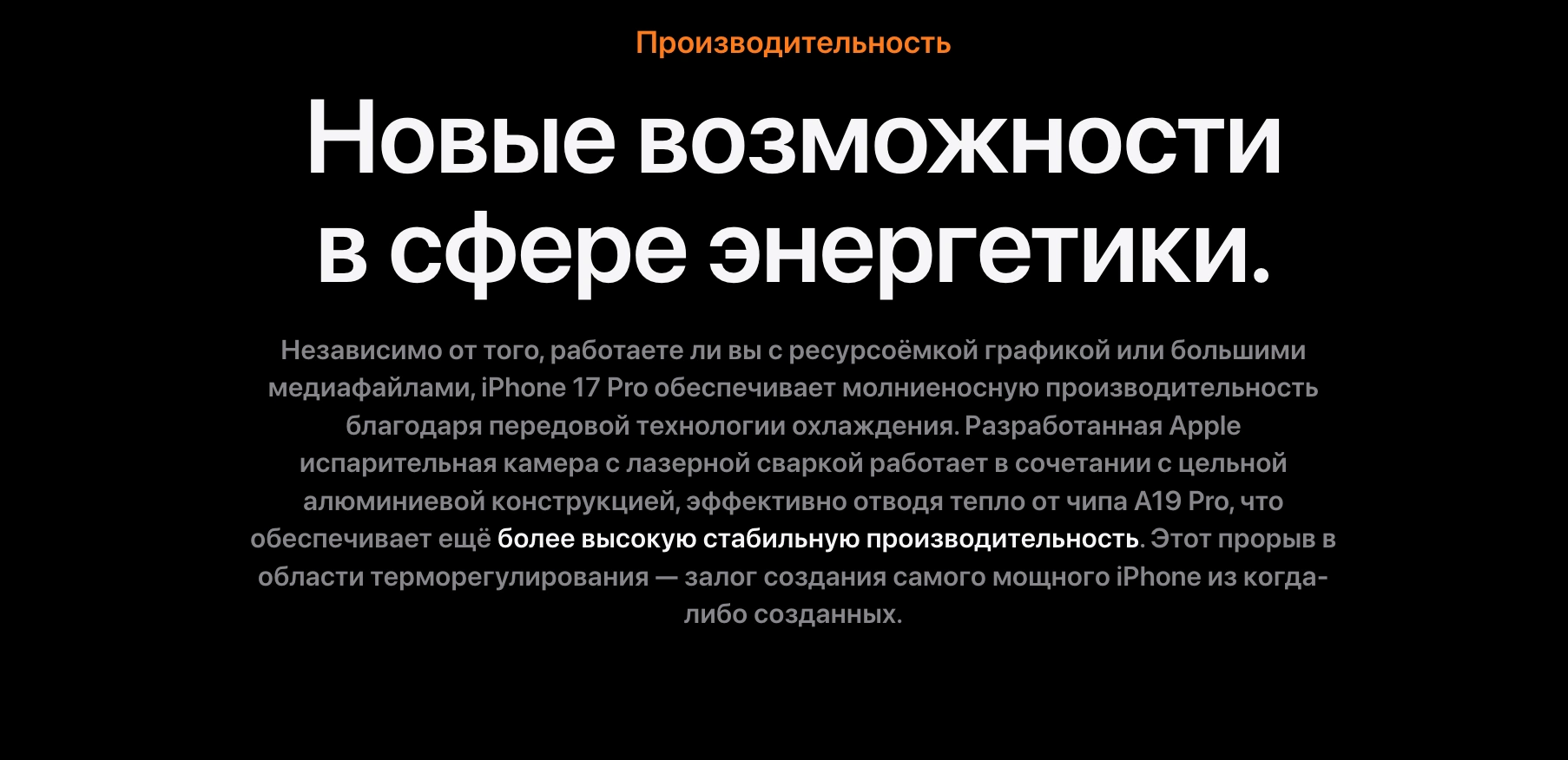 - Процессор: Apple A19 Pro, высокая производительность и энергоэффективность
