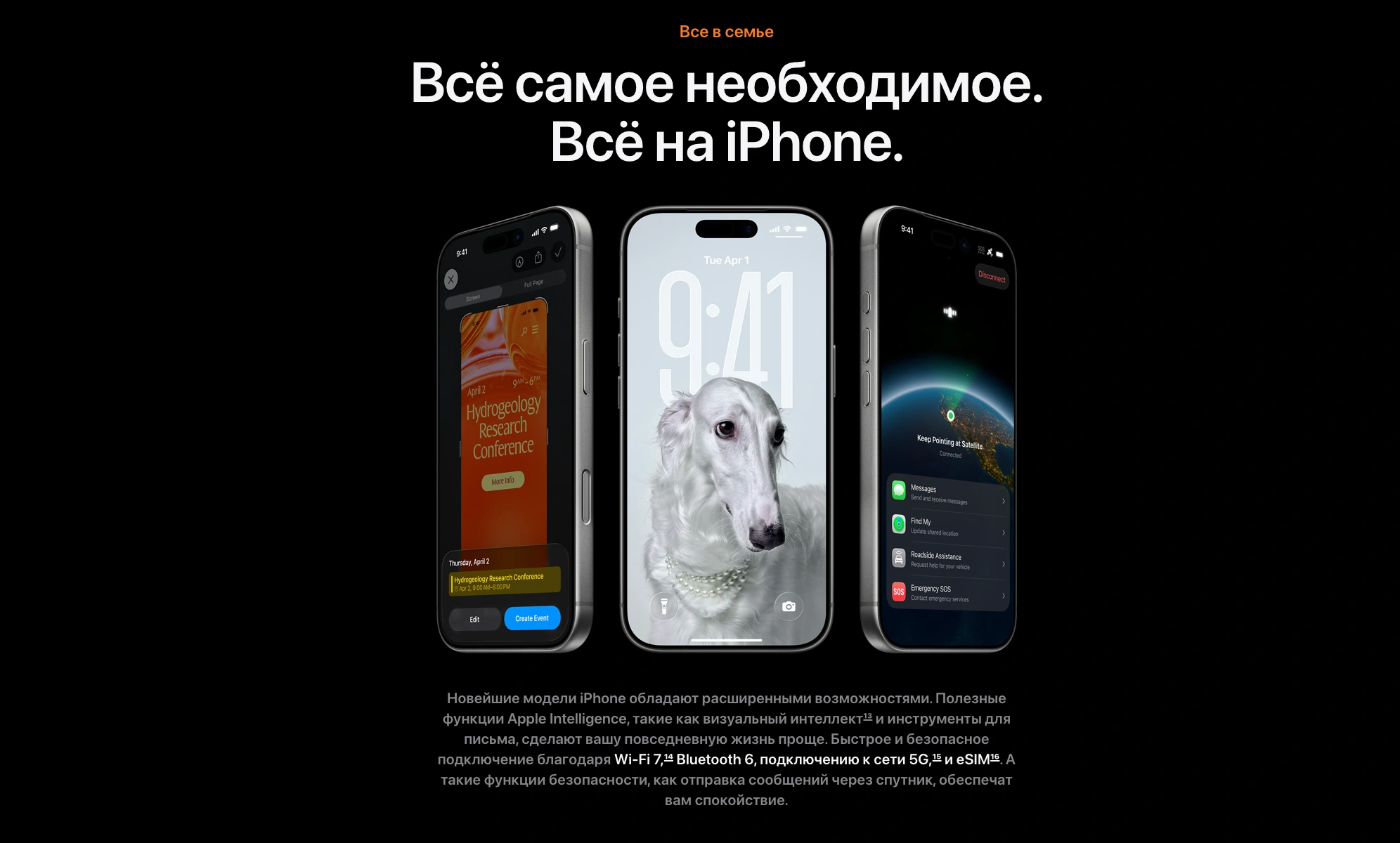 - • Поддержка Wi-Fi 7, Bluetooth 6, LiDAR-сканер, Face ID