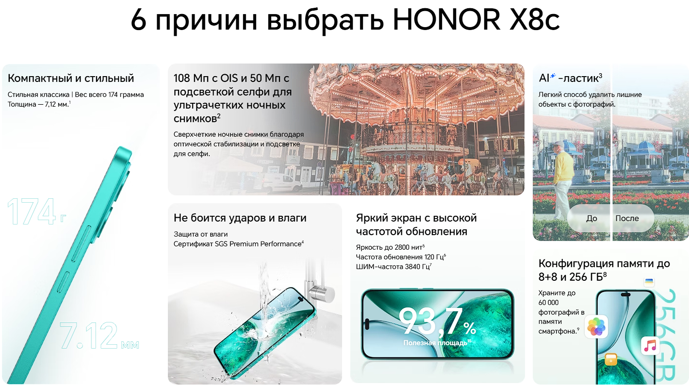 Смартфон Honor X8С 8/256 ГБ, Midnight Black