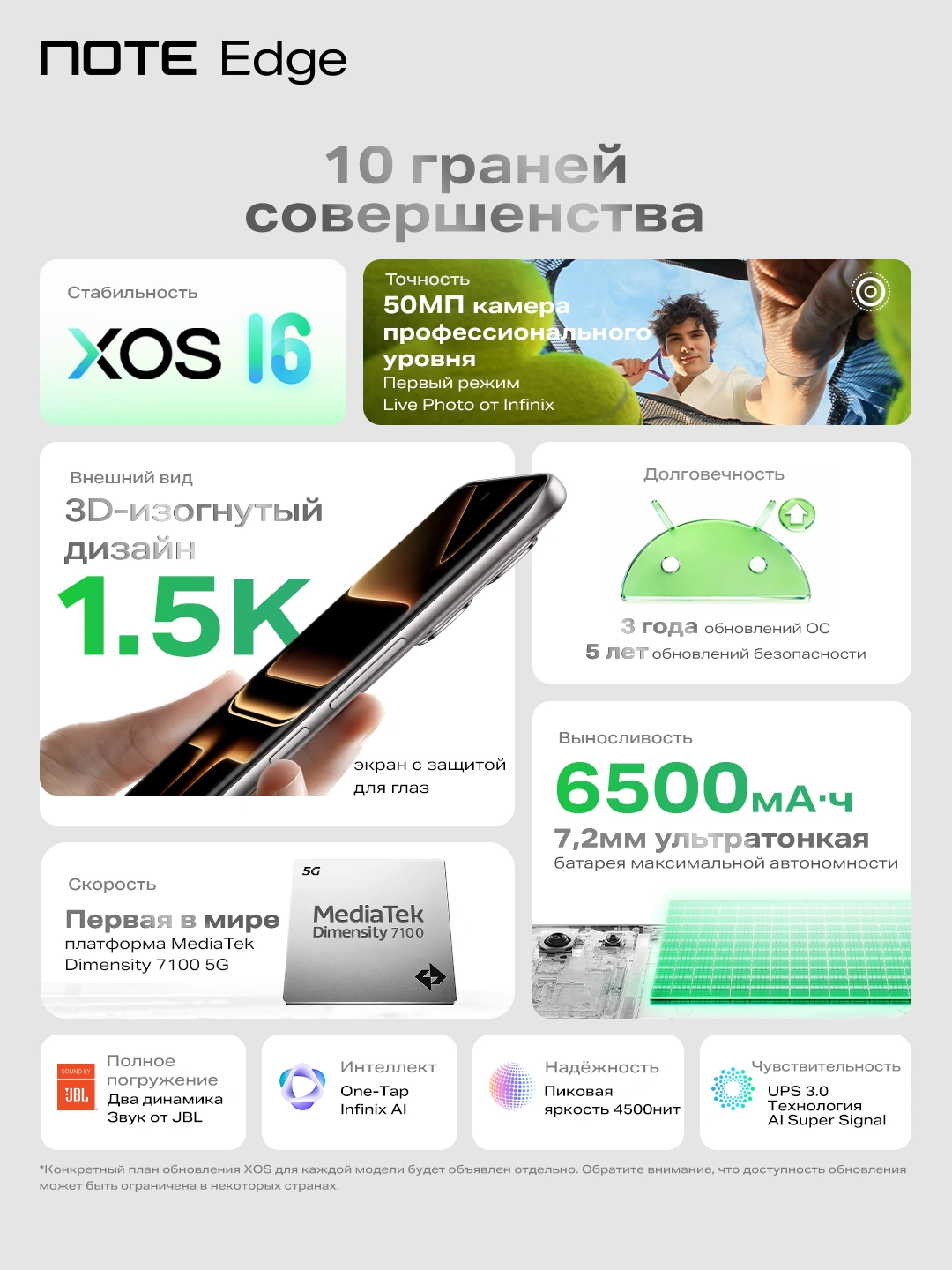 Смартфон Infinix Note Edge 5G 8/256 ГБ, Lunar Titanium