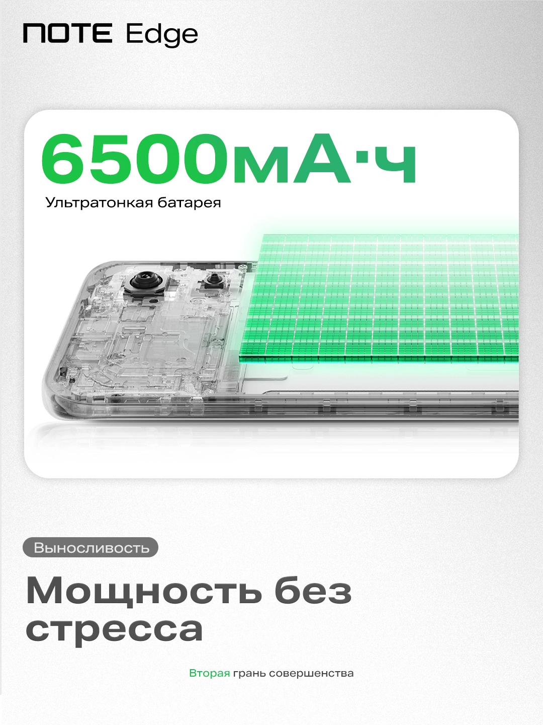 Смартфон оснащён мощной батареей 6500 мА·ч, которая обеспечивает длительную автономную работу даже при активном использовании.