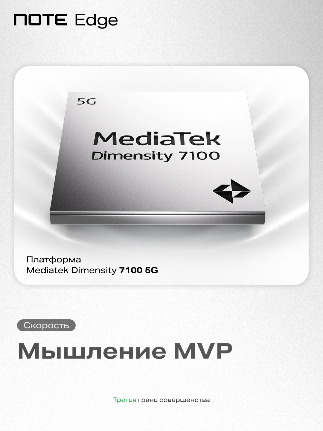 Высокая производительность- Смартфон работает на мощном процессоре MediaTek Dimensity 7100, созданном по 6-нм техпроцессу, который обеспечивает высокую производительность и энергоэффективность.