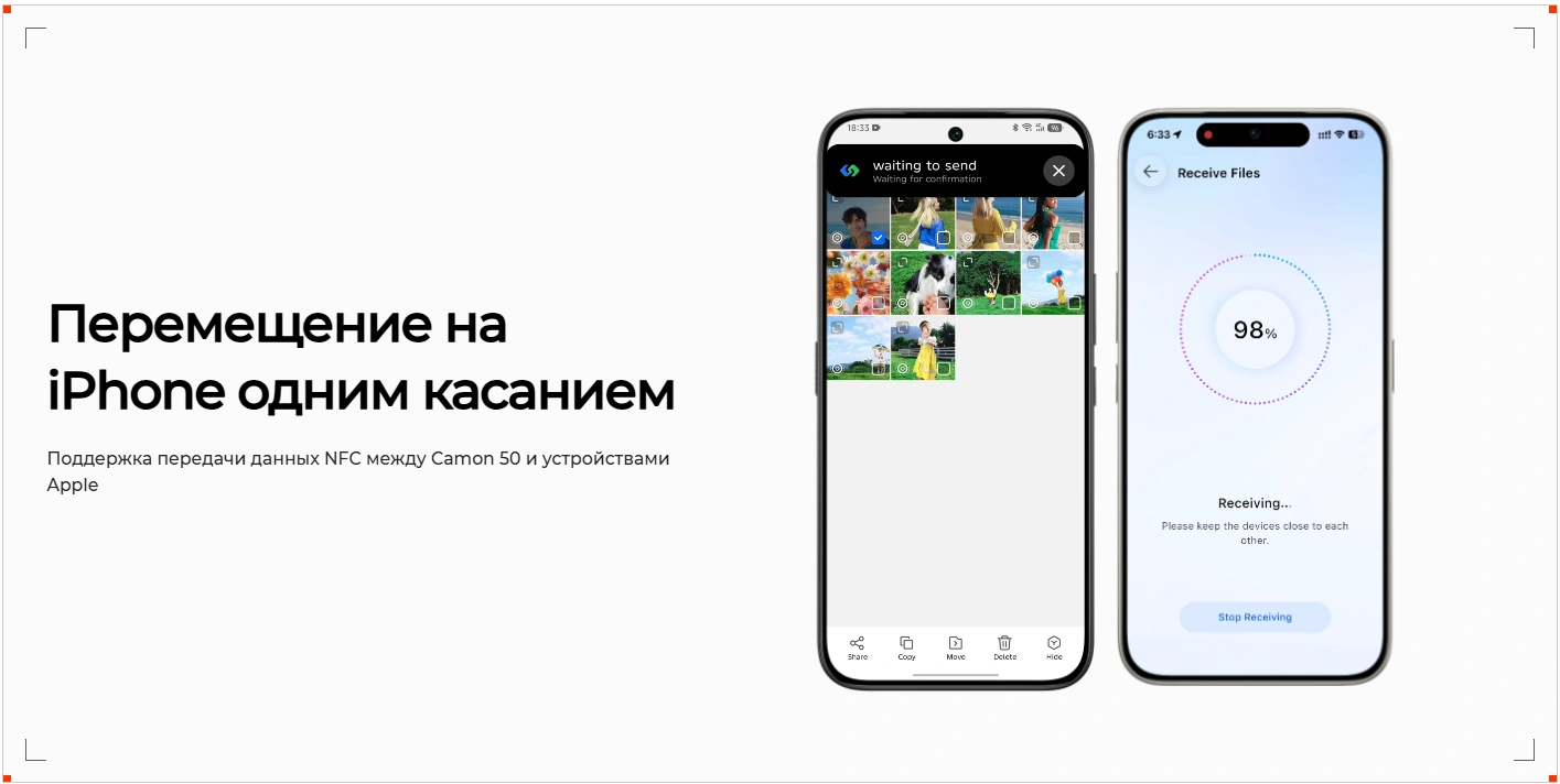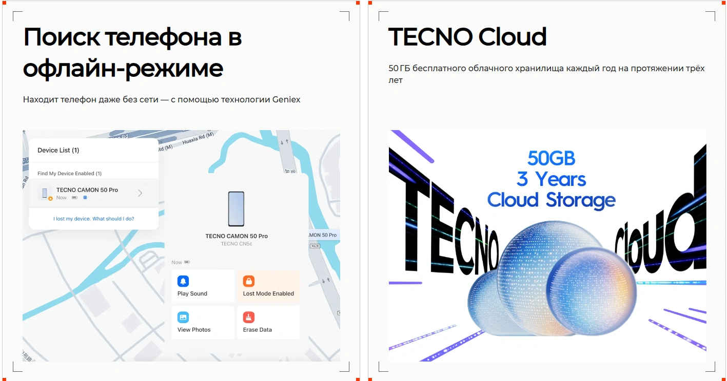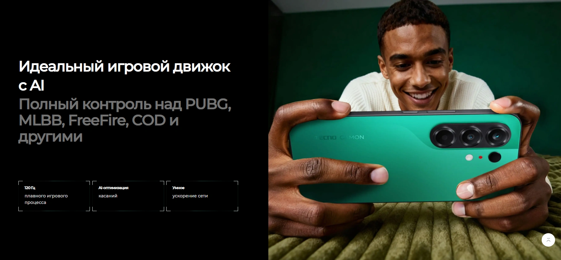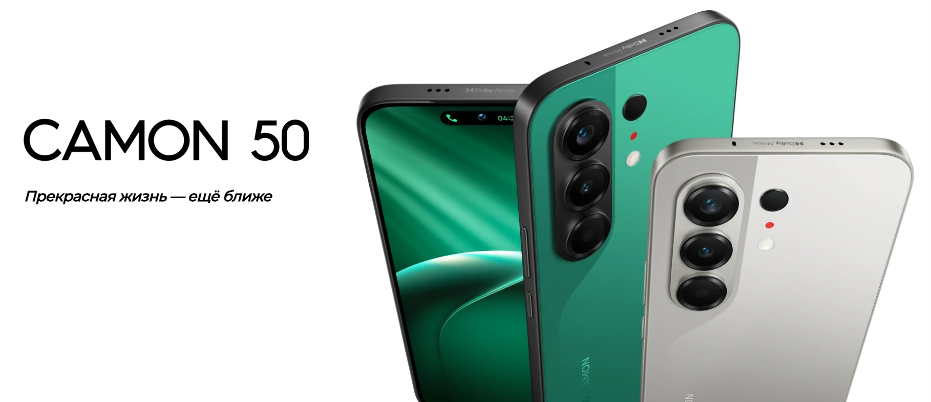 С первого взгляда Tecno Camon 50 привлекает своим стильным корпусом с прямыми линиями и премиальными оттенками. Смартфон удобно лежит в руке, а тонкий профиль делает его использование максимально комфортным. Большой AMOLED-дисплей с высокой частотой обновления обеспечивает невероятно плавное изображение, яркие цвета и четкость каждой детали — будь то просмотр видео, игры или работа с приложениями.