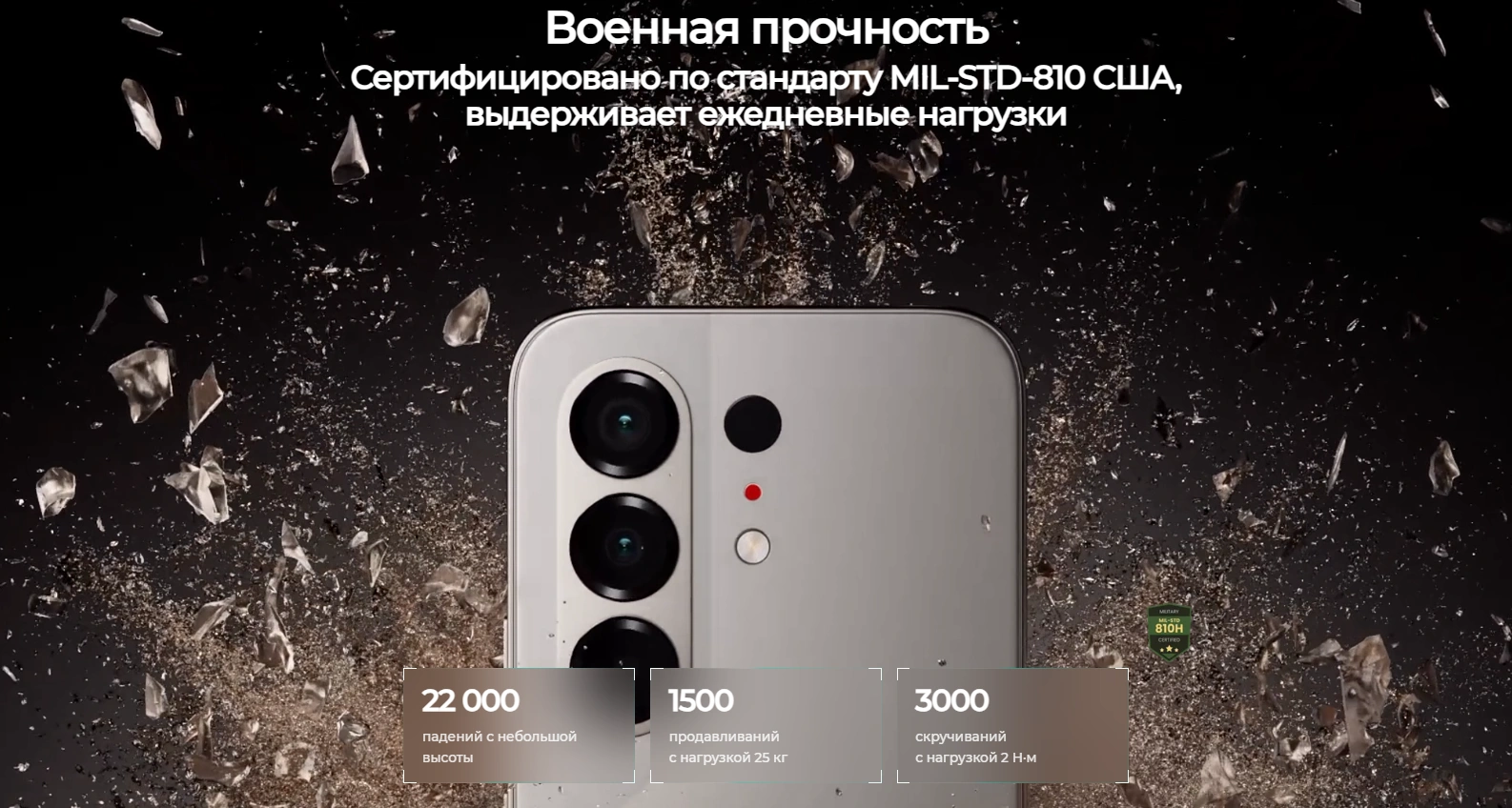 Смартфон также отличается повышенной прочностью и защитой. Он соответствует стандартам IP66, IP68, IP69 и IP69K, что означает устойчивость к пыли, воде, высоким температурам и даже струям высокого давления. Дополнительная сертификация по военному стандарту гарантирует надежность при ежедневном использовании.