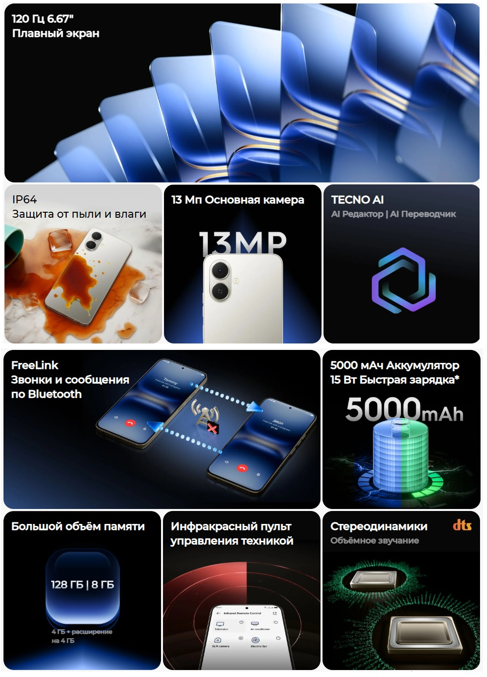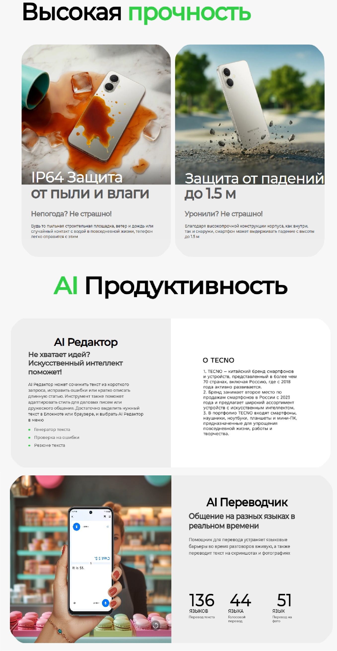 - ОС Android 15 с фирменной оболочкой HiOS 15 и AI-функциями.