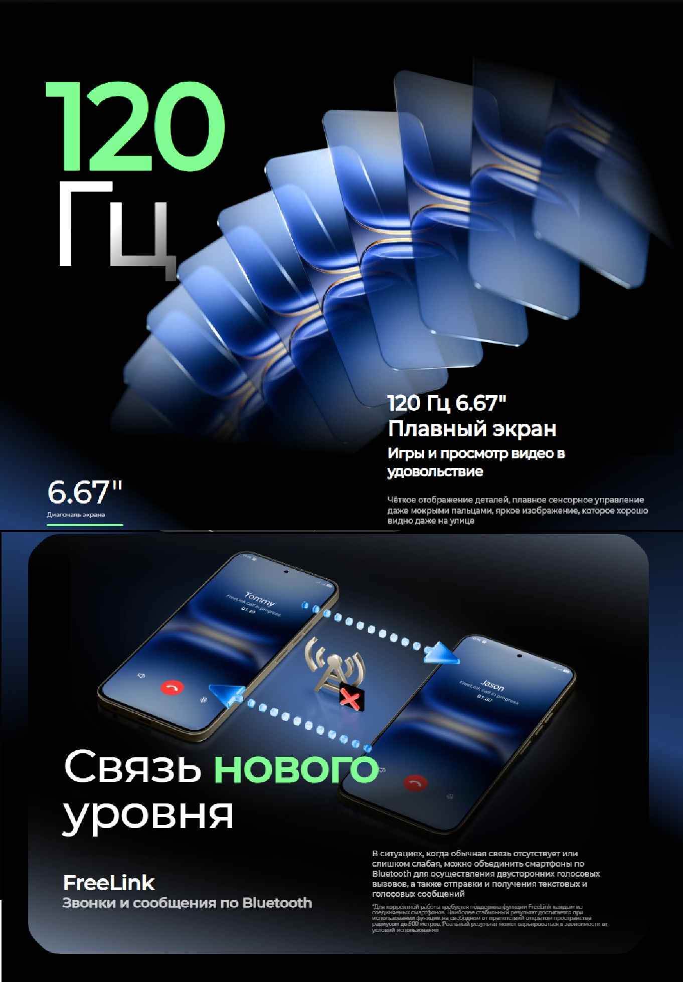 - Экран 6.67″ IPS, разрешение HD+, частота обновления 120 Гц для плавной работы.