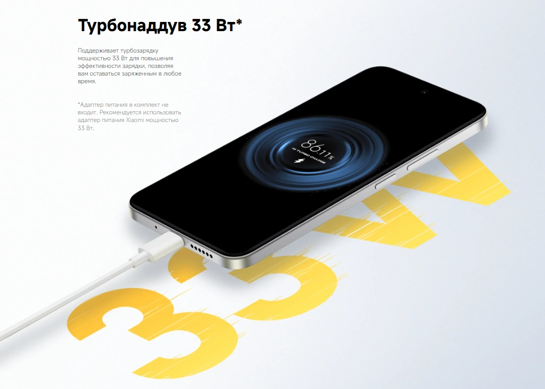 • Быстрая зарядка 33 Вт — высокая скорость восполнения энергии
