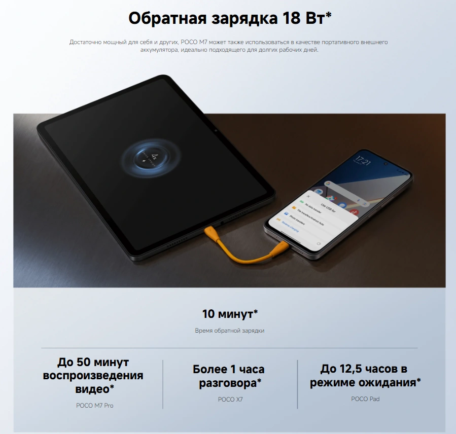 • Обратная зарядка 18 Вт — возможность подзарядки других устройств