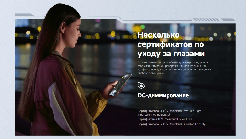 Большой 6.9-дюймовый FHD+ дисплей с частотой обновления до 144 Гц дарит невероятно плавную картинку, насыщенные цвета и высокий уровень комфорта для глаз. Экран автоматически адаптируется под сценарии использования, снижая нагрузку на зрение и экономя заряд батареи.