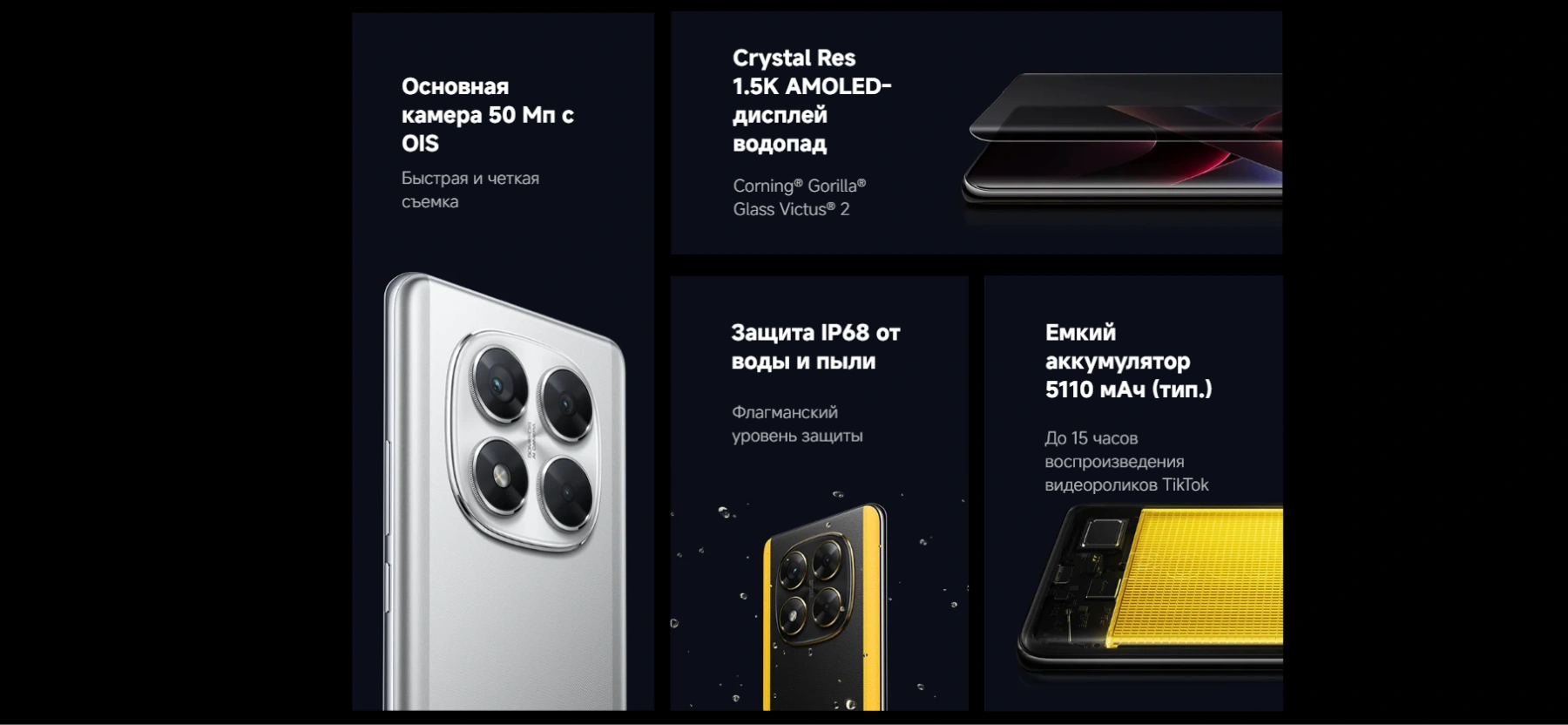 - IP68 защита от воды и пыли: Защита от воды и пыли по стандарту IP68, что гарантирует дополнительную защиту от случайных загрязнений и попадания воды
