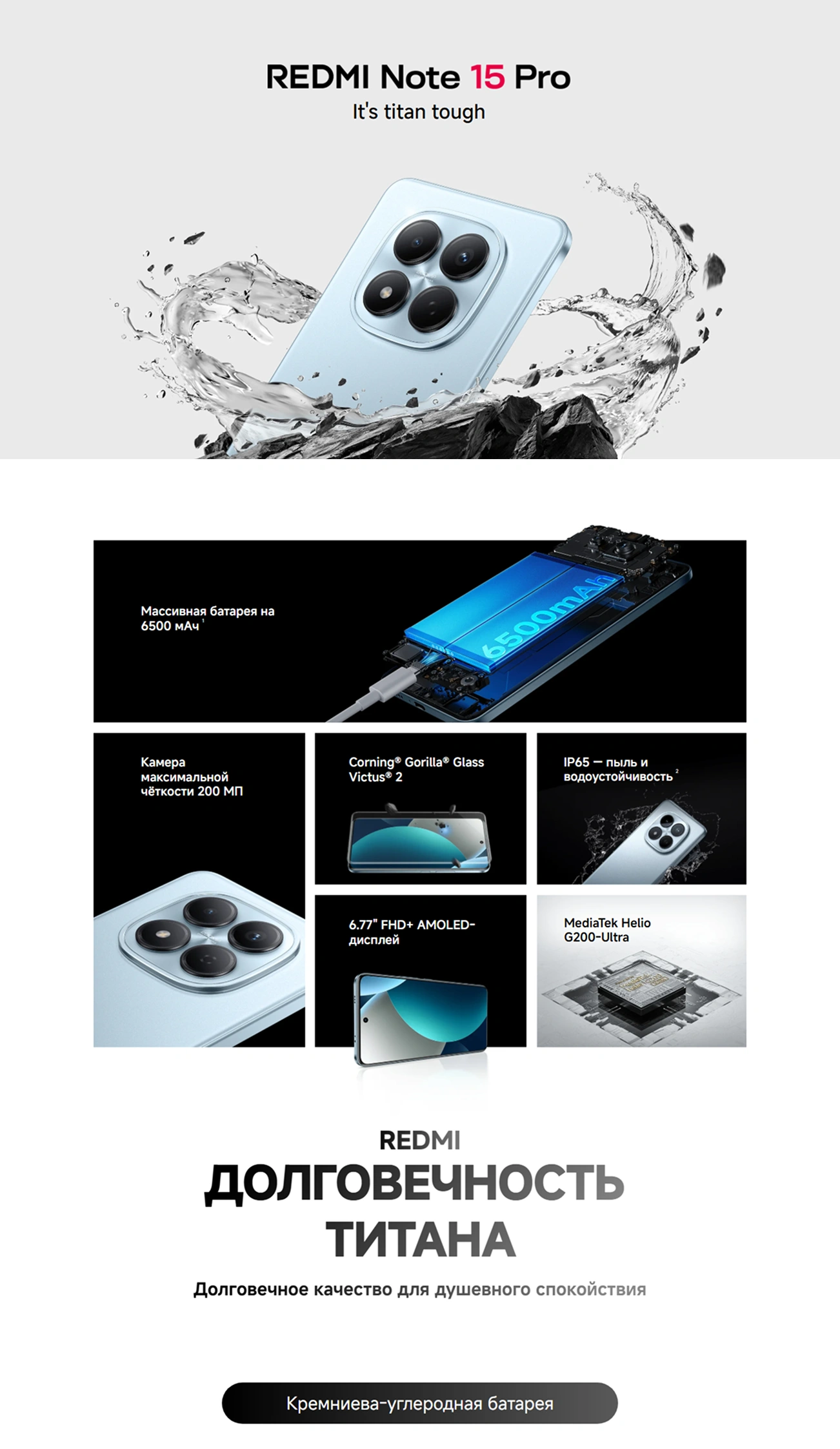 Redmi Note 15 Pro — это смартфон для тех, кто хочет максимум: флагманскую камеру, премиальный экран, высокую автономность и умные технологии в одном стильном устройстве.