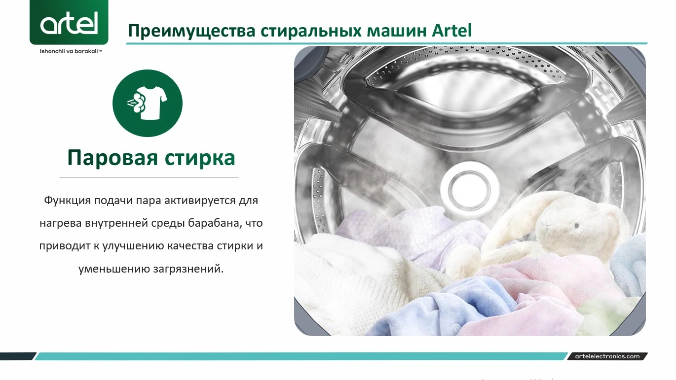 Стиральные машины ARTEL сочетают в себе изысканный дизайн и передовые технологии. Данная стиральная машина относится к классу энергоэффективности А+++. Предназначена для эффективной очистки вещей. В этой модели установлен инновационный BLDC inverter motor. Он рассчитан на длительную эксплуатацию, экономно расходует электроэнергию и работает практически бесшумно.