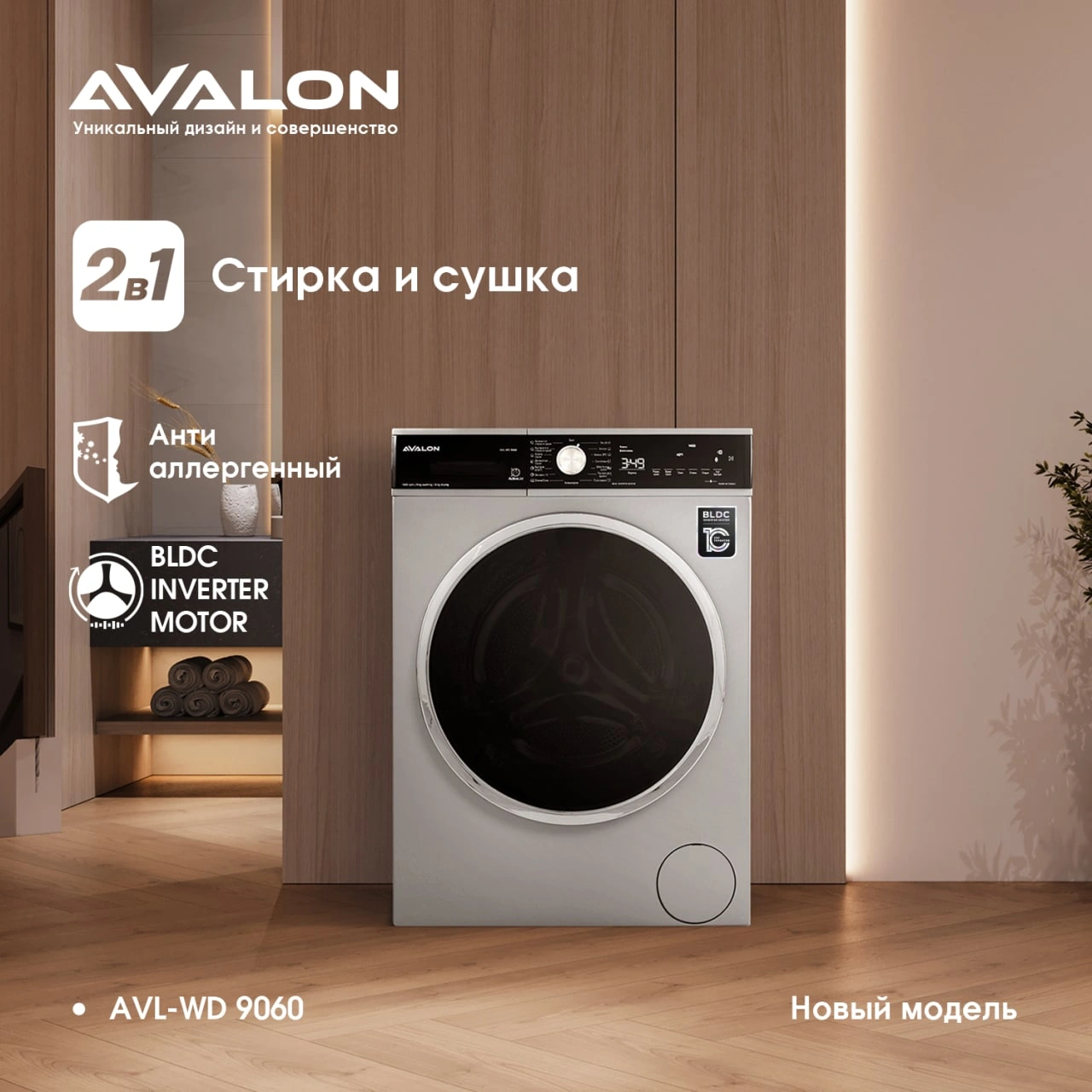 Стиральные машины AVALON сочетают в себе изысканный дизайн и передовые технологии. Данная стиральная машина относится к классу энергоэффективности А+++. Предназначена для эффективной очистки вещей. В этой модели установлен инновационный BLDC inverter motor. Он рассчитан на длительную эксплуатацию, экономно расходует электроэнергию и работает практически бесшумно.