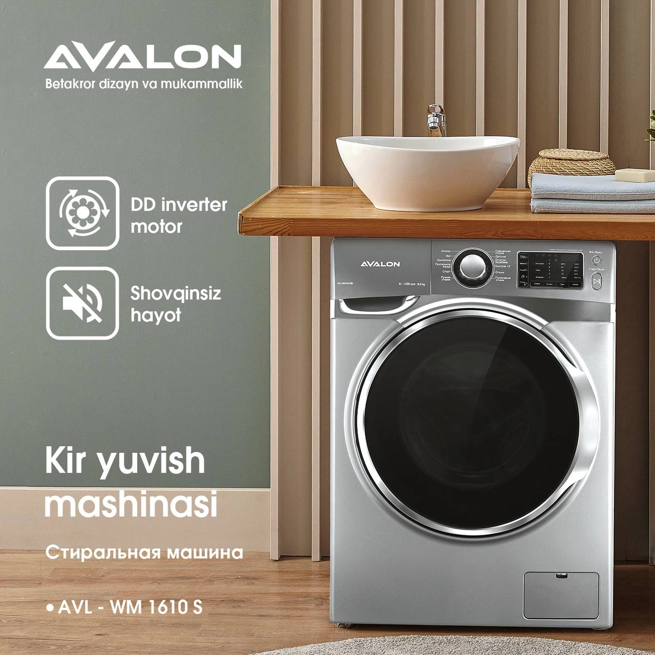 Стиральные машины Avalon сочетают в себе изысканный дизайн и передовые технологии. Данная стиральная машина относится к классу энергоэффективности А+++. Предназначена для эффективной очистки вещей. В этой модели установлен инверторный мотор с прямым приводом. Он рассчитан на длительную эксплуатацию, экономно расходует электроэнергию и работает практически бесшумно.